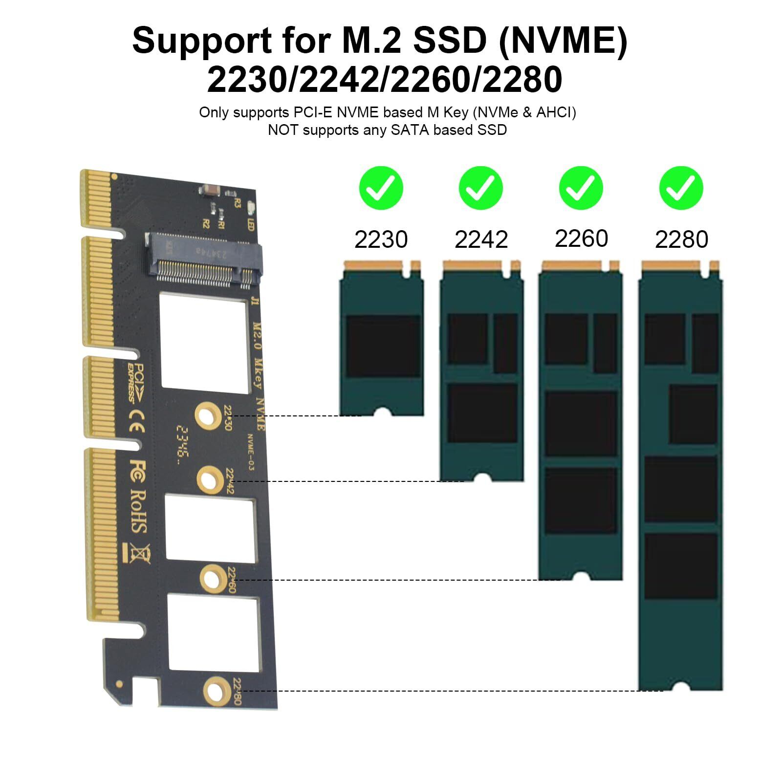 M.2 NVMe to PCIe 4.0 X16 変換アダプター: マザーボードに1つのPCIe X4/X8/X16スロットをM.2 Key Mスロットに変換することは このKey MスロットにM.2 NVMe SSDを取り付けることができます。