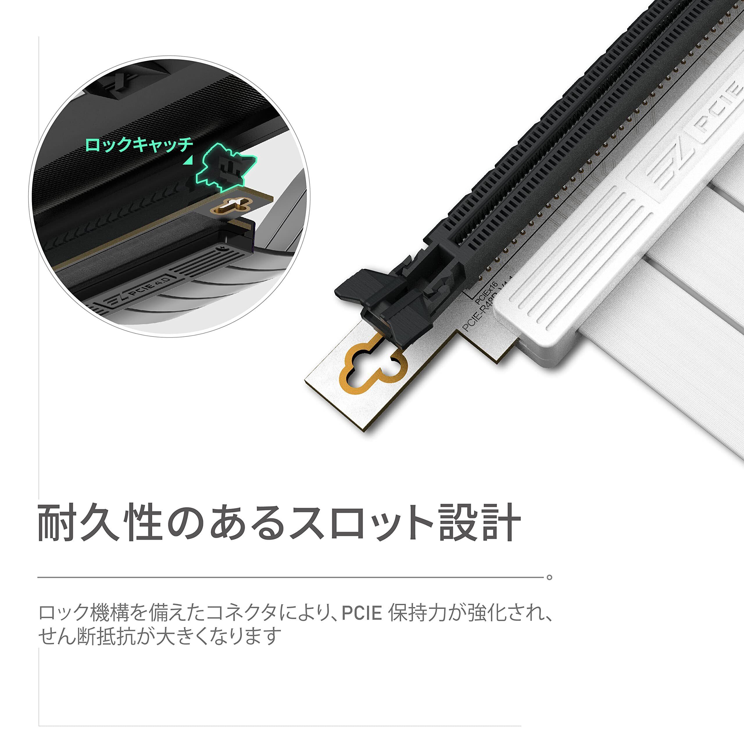 「このライザーケーブルは、PCIe 4.0に完全対応しており、より高速なデータ伝送を可能にします!さらに、GDPの信号安定性を向上させるシールド設計を採用しており、データ損失を防ぎます。これにより、安心して使用することができます。」