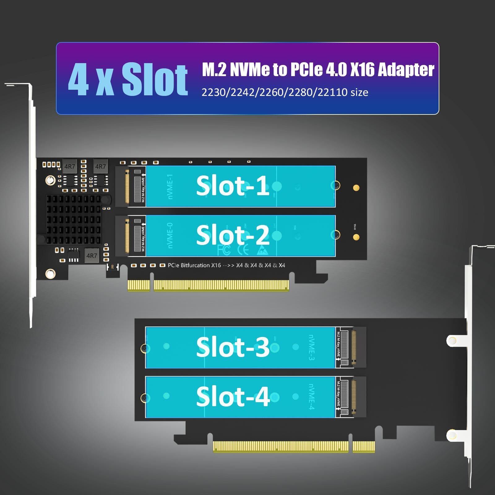 4ポート M.2 NVMe to PCIe 4.0 X16アダプターカード: このPCIe 4.0 X16アダプタに4 xM.2 NVMe SSD (22110/2280/2260/2242/2230 M.2 NVMe SSDをサポート)を取り付けることにより、コンピュータは同時に4XM.2 NVMe SSDにアクセスすることができます。