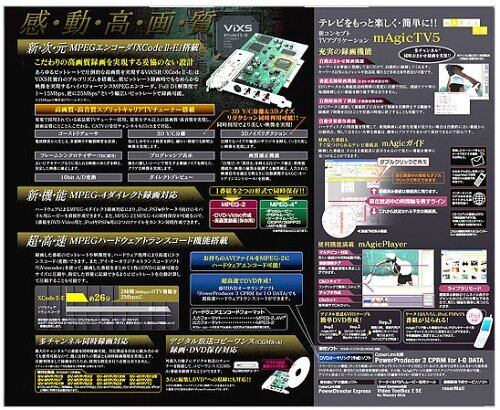 圧倒的な高画質を実現するMPEG-2/4エンコーダ「XCode II-E」を搭載したPCI接続の内蔵モデル。独自のアルゴリズムやスプリットキャリアチューナーを搭載し、最高峰のTVキャプチャを実現する。新たにMPEG-4ダイレクト録画に対応し、iPod、PSP、ケータイ向けムービーを直接作成することができるようになった。また、MPEGハードウェアトランスコード機能や、デジタル放送コピーワンス(CGMS-A)番組の録画&DVD保存など、TVキャプチャを楽しみつくすための機能が満載。もちろん、アイ・オーオリジナルソフト「mAgicTV5」が標準添付。パソコンならではの使い心地と、最大6チャンネル(6チューナー)の同時録画※を実現する。