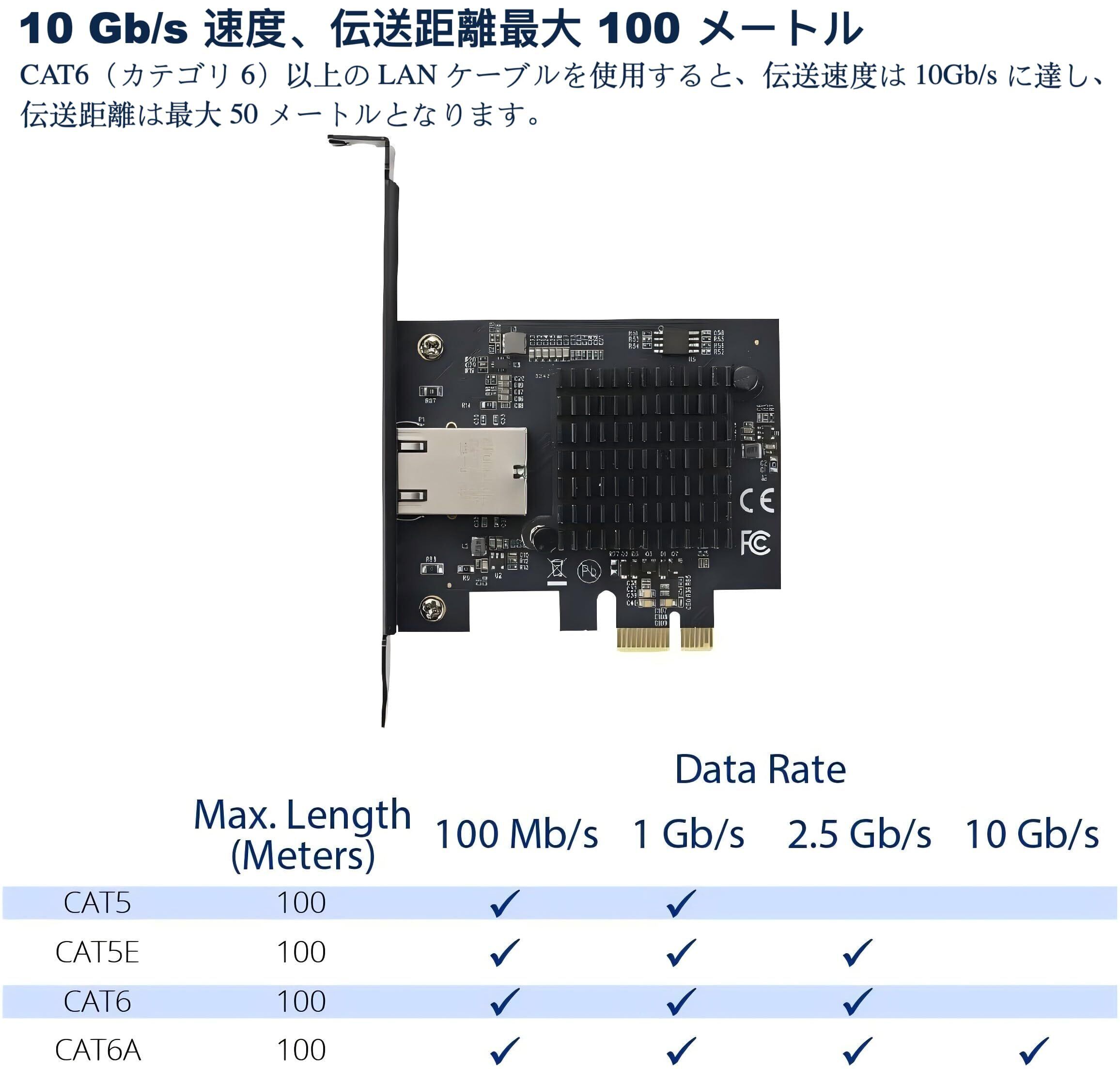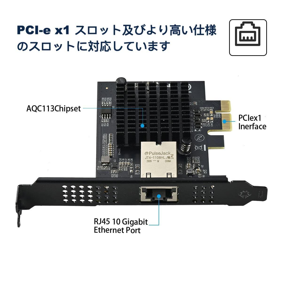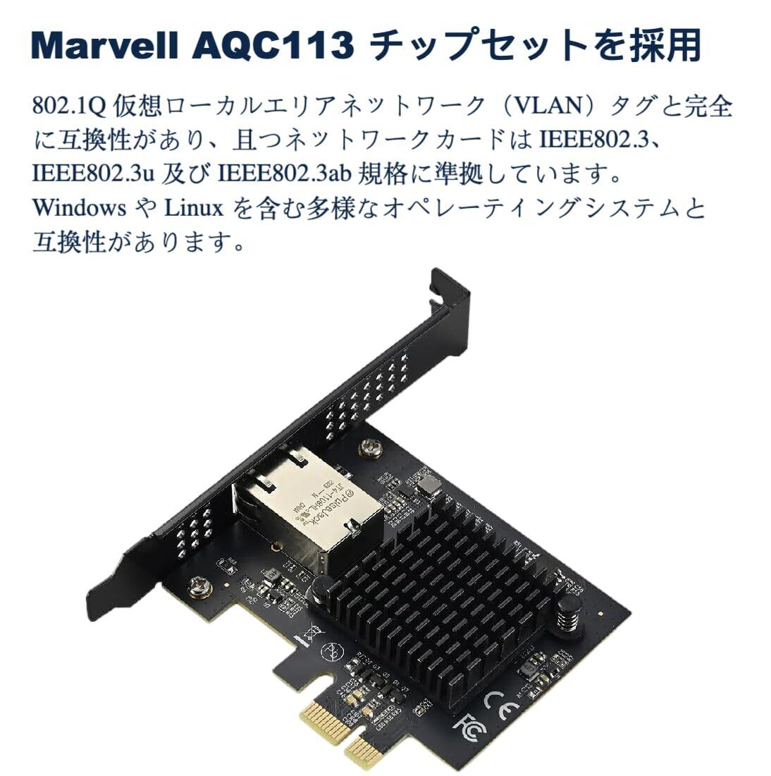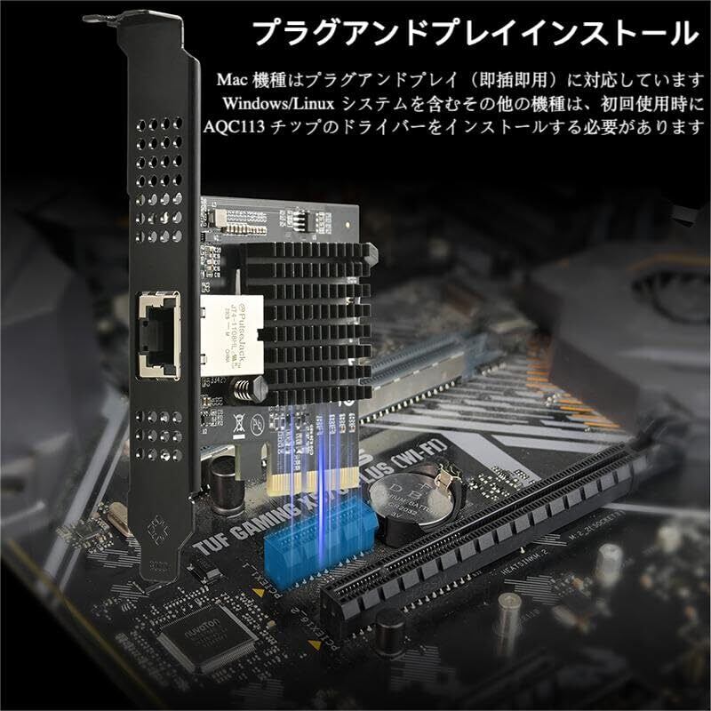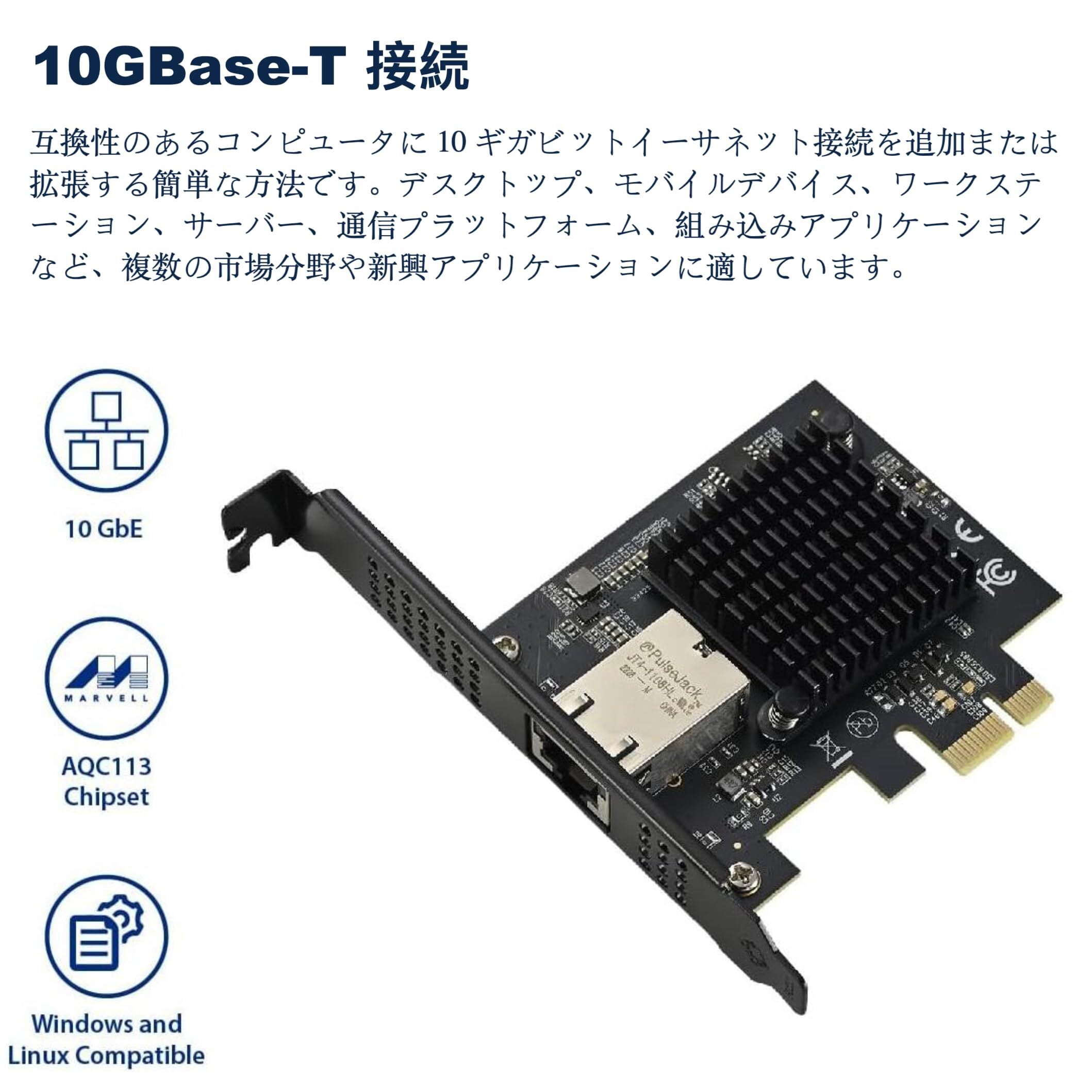 【10Gbps対応】Marvell AQC113チップ搭載 PCIe 4.0 x1 ネットワークカード - Windows/Linux自動認識、1G/2.5G/5G/10Gマルチギガ対応