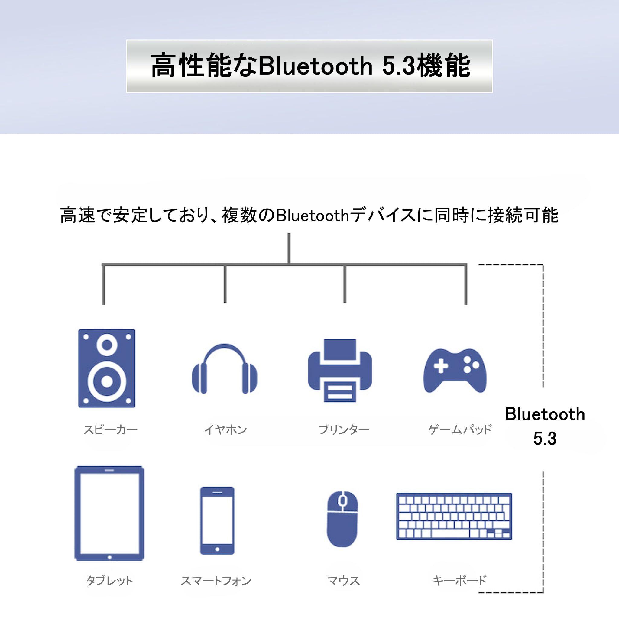 - Bluetooth 5.3対応で、幅広いデバイスとの接続が可能!