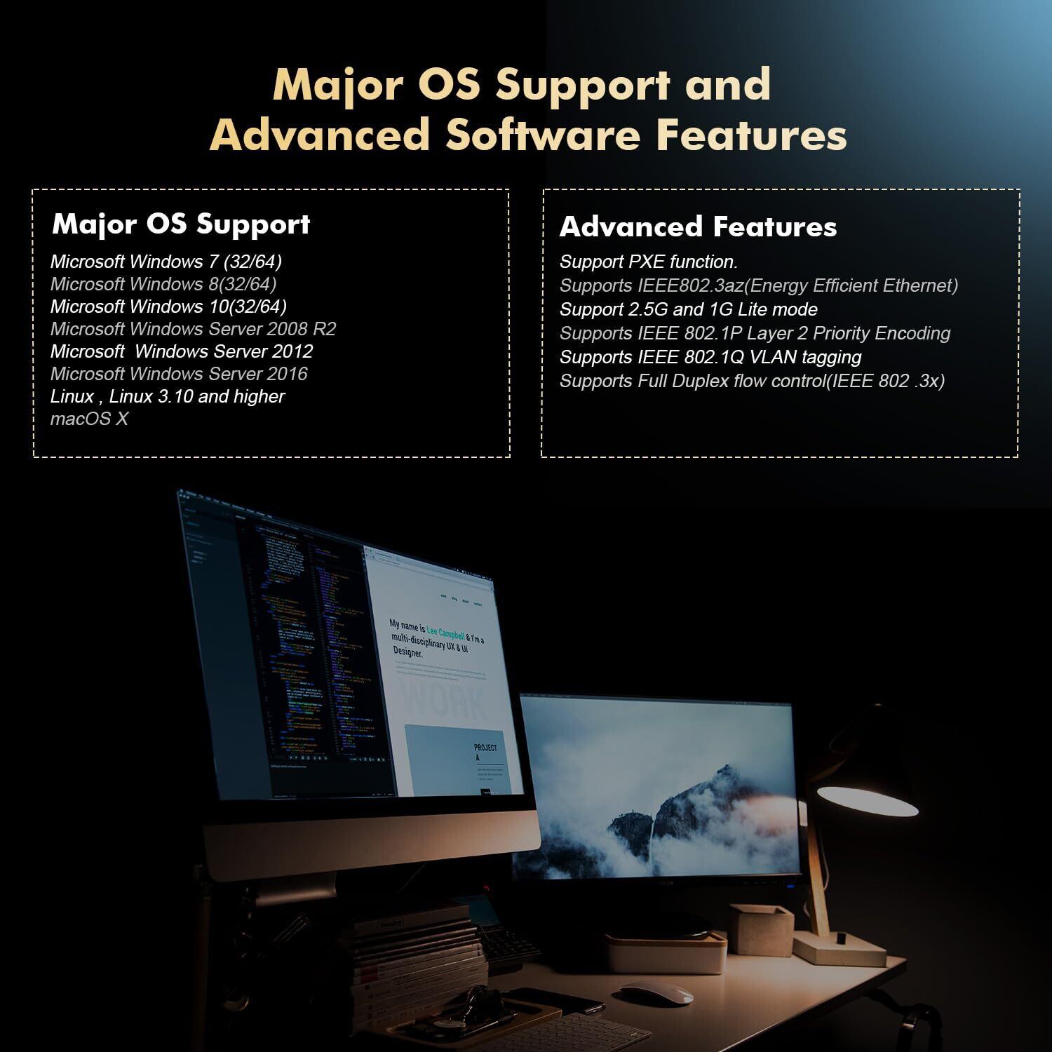 【2.5Gbpsネットワーク】For Realtek RTL8125Bチップで最大2.5ギガビット、1Gbps/100M/10Mオートネゴシエーションに対応、最大100m(328フィート)の距離で標準のCat5e以上のUTPをサポート。