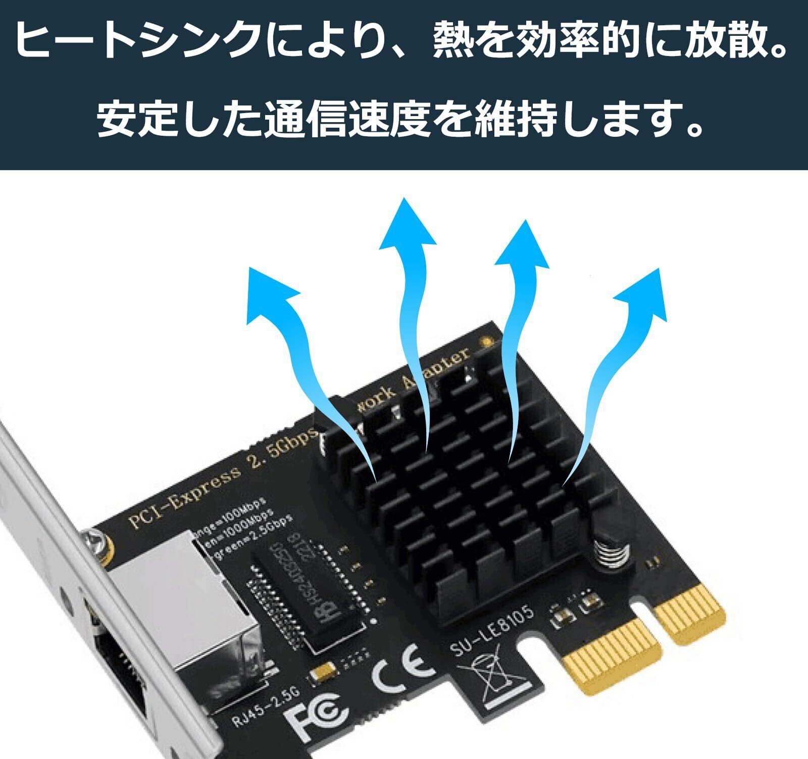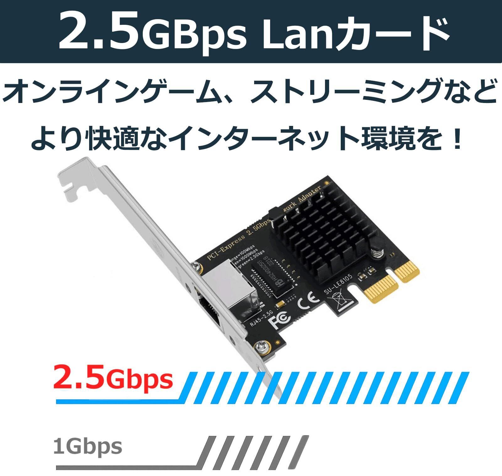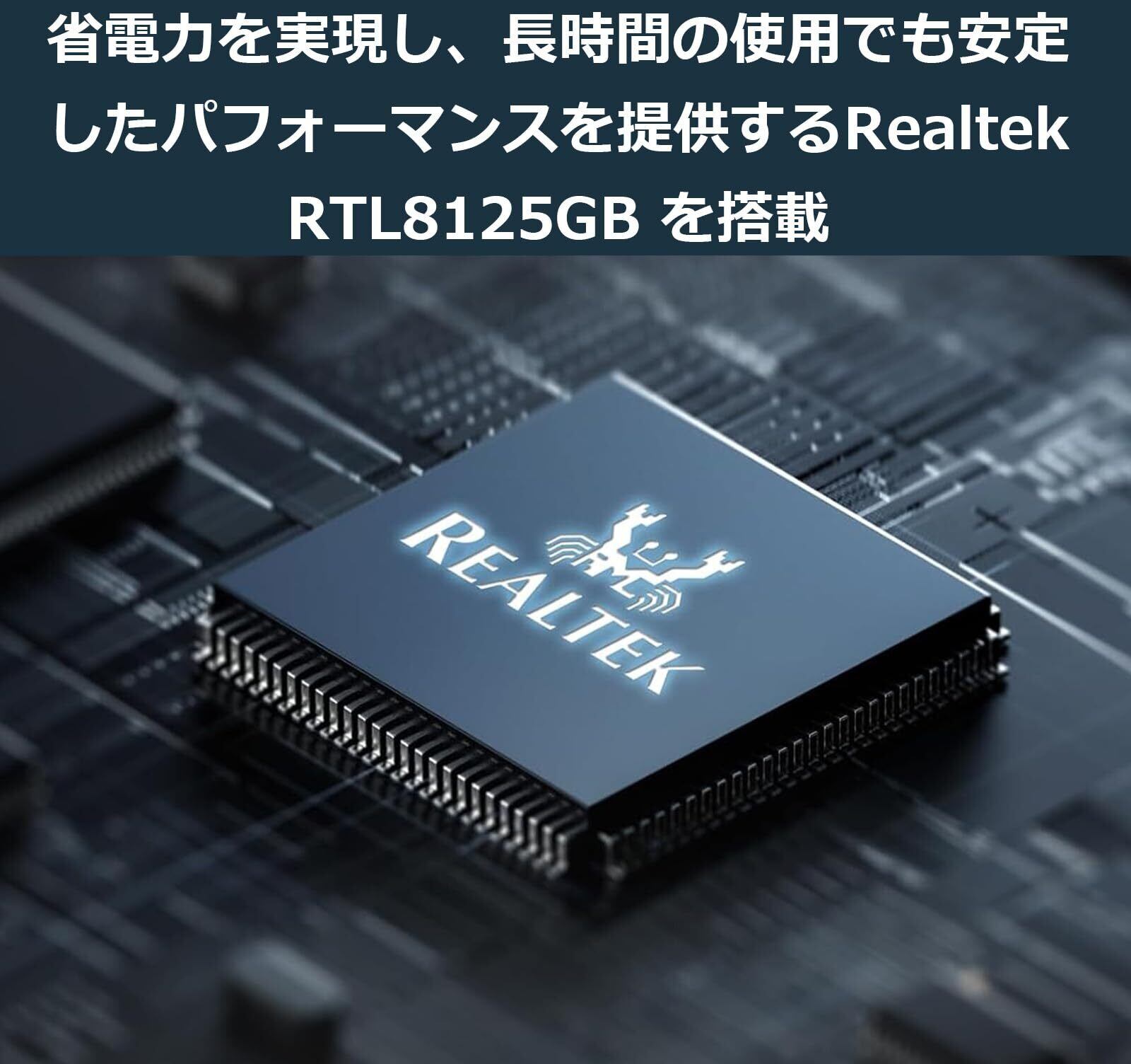 最新のRealtek RTL8125BGチップを採用した本LANカードは、2.5Gbpsの高速データ転送を実現します。