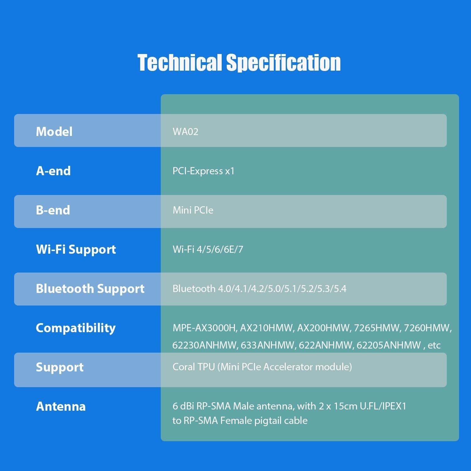 **GLOTRENDS WA02 Mini PCIe - PCIe X1 WiFiアダプタ、ハーフハイMini PCIe WiFi 4/5/6/6e/Coral TPU モジュール用、3.5 dBi SMAアンテナ付属**