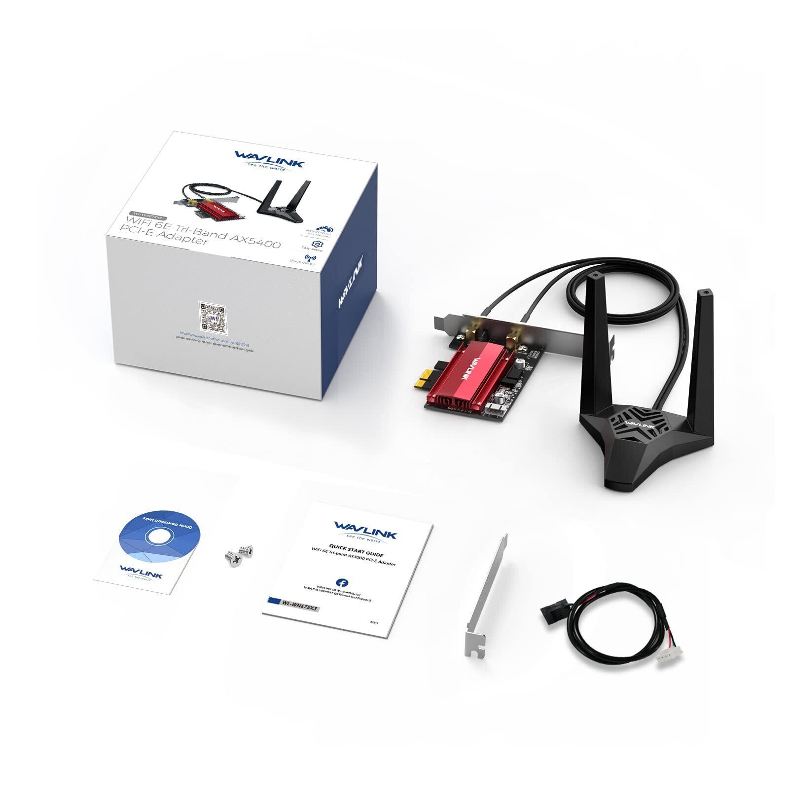 WAVLINK AX5400M WiFi 6E PCIeネットワークカード、トライバンドAX210ワイヤレスアダプタ、Bluetooth 5.3、MU-MIMO、WPA3、OFDMA、ロープロファイルブラケット、ヒートシンク、Windows 10/11 PC向け