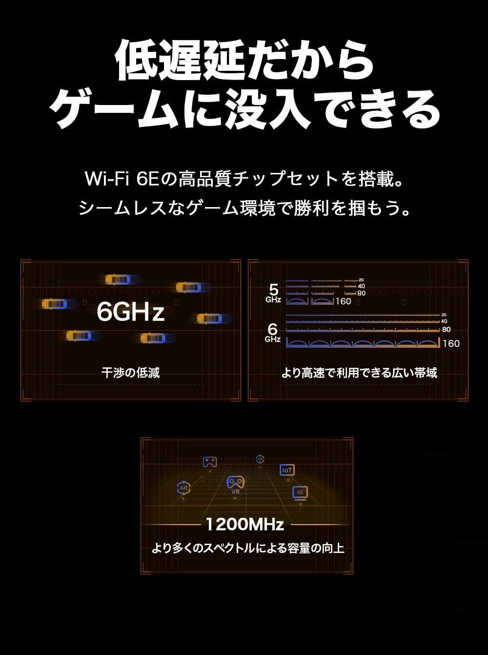 - 6GHz、5GHz、2.4GHzの3つの帯域を利用可能!