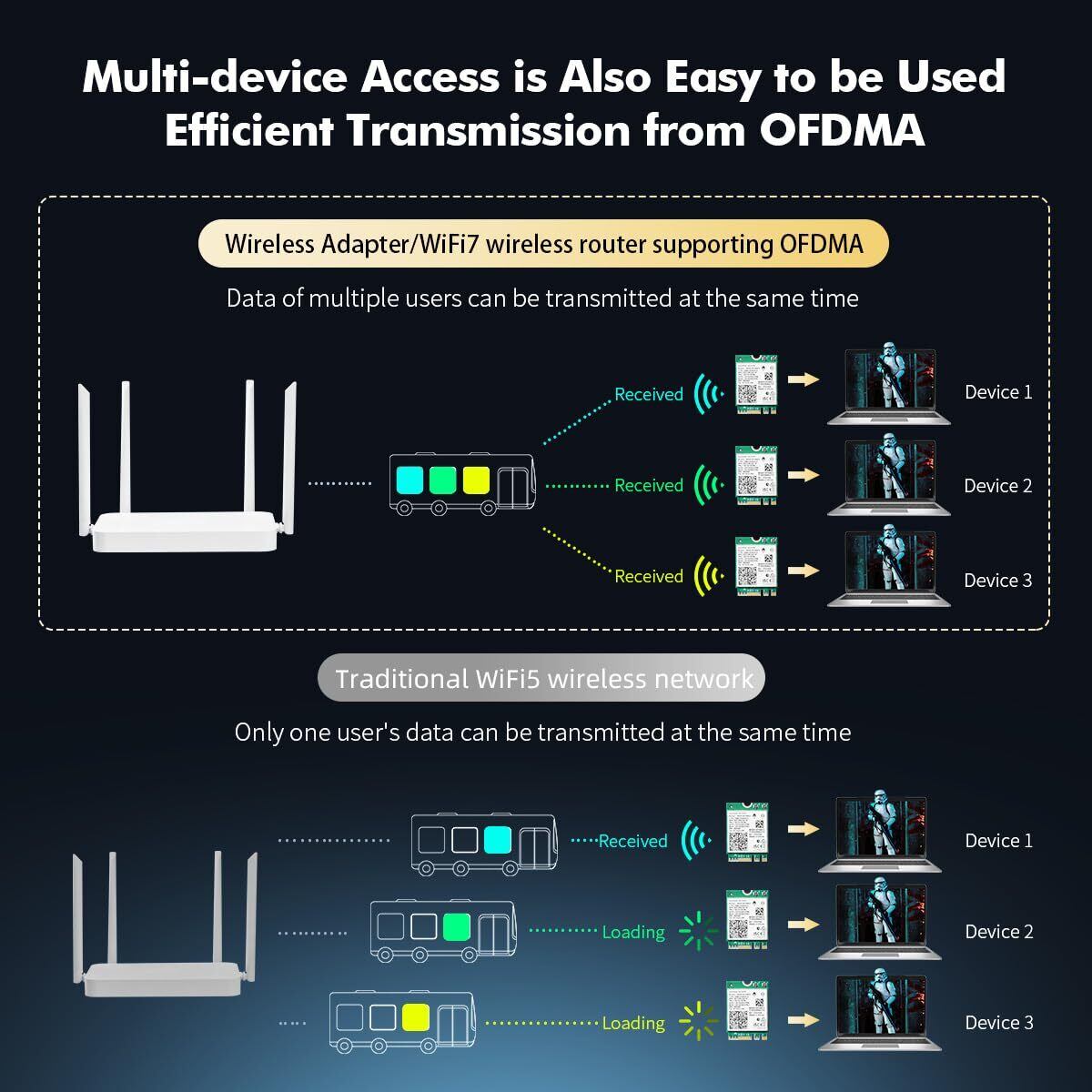 Binardat WiFi7カード M.2 BE200 WiFiネットワークアダプタ、Intel BE200NGWチップ Bluetooth 5.4、8774Mbpsトライバンド2.4GHz/5GHz/6GHz OFDMA & MU-MIMO、ノートパソコンWindows 10/11用