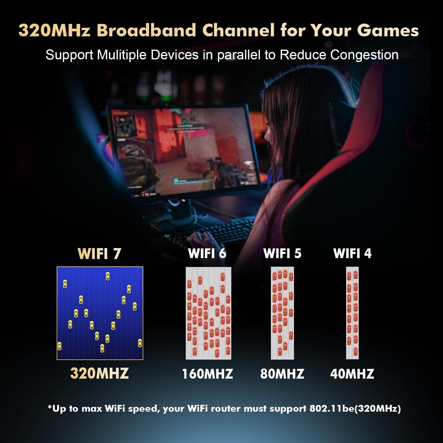 【WiFi7 8774Mbps】このWiFi7カードはIntel BE200NGWチップセットを搭載し、IEEE802.11a/b/g/n/ac/ax WiFi6E/WiFi6/WiFi5と互換性のあるWiFi7 IEEE 802.11be/EHT標準をサポートします。最大8774Mbps(574Mbps @2.4GHz + 2400Mbps @5GHz + 5800Mbps @6GHz)の速度で、シームレスなストリーミング、高速ファイル転送をサポートし、接続が切断されることはありません。