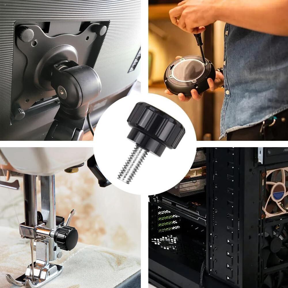 「このローレットノブネジは、ユーザーの利便性を考慮して設計されており、素手での締め付けが可能です。特にモニターアームなどの取り付け作業を快適に行いたい方に最適です。」