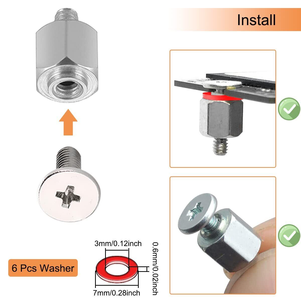 パッケージ内容: M2ネジ9本。 6 個の M3 ネジ; 高さの異なるナット15個。 レッドワッシャー6個。 ドライバー1本。