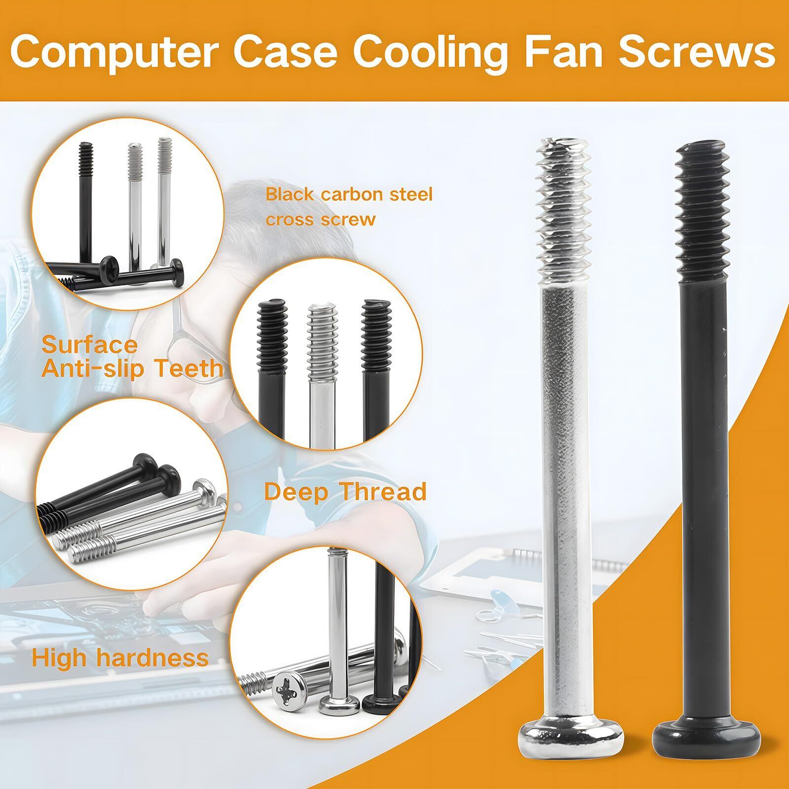 「このネジセットは#6-32サイズで、様々な冷却ファンやラジエーターに広く対応しています。多様な場面での取り付けが可能で、あらゆるPCケースや構成にフィットします!」