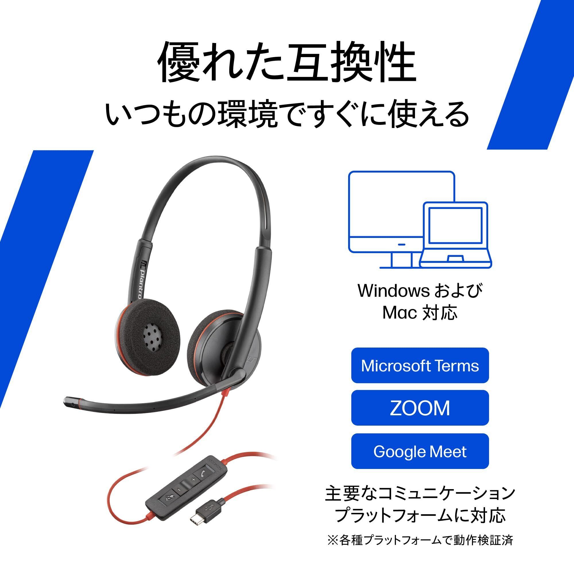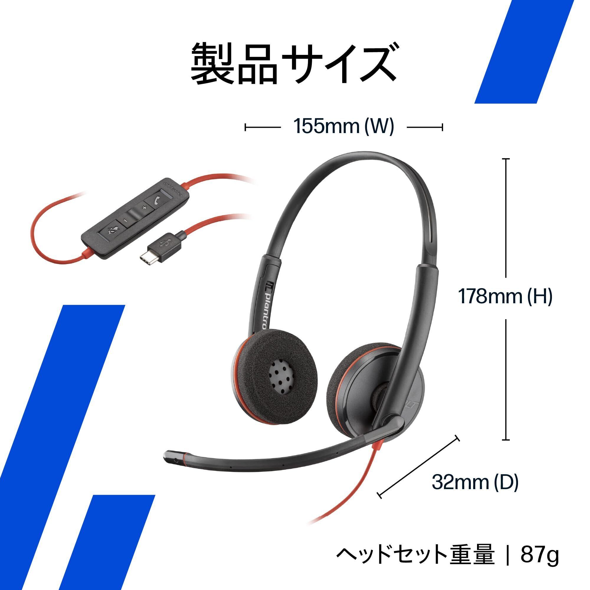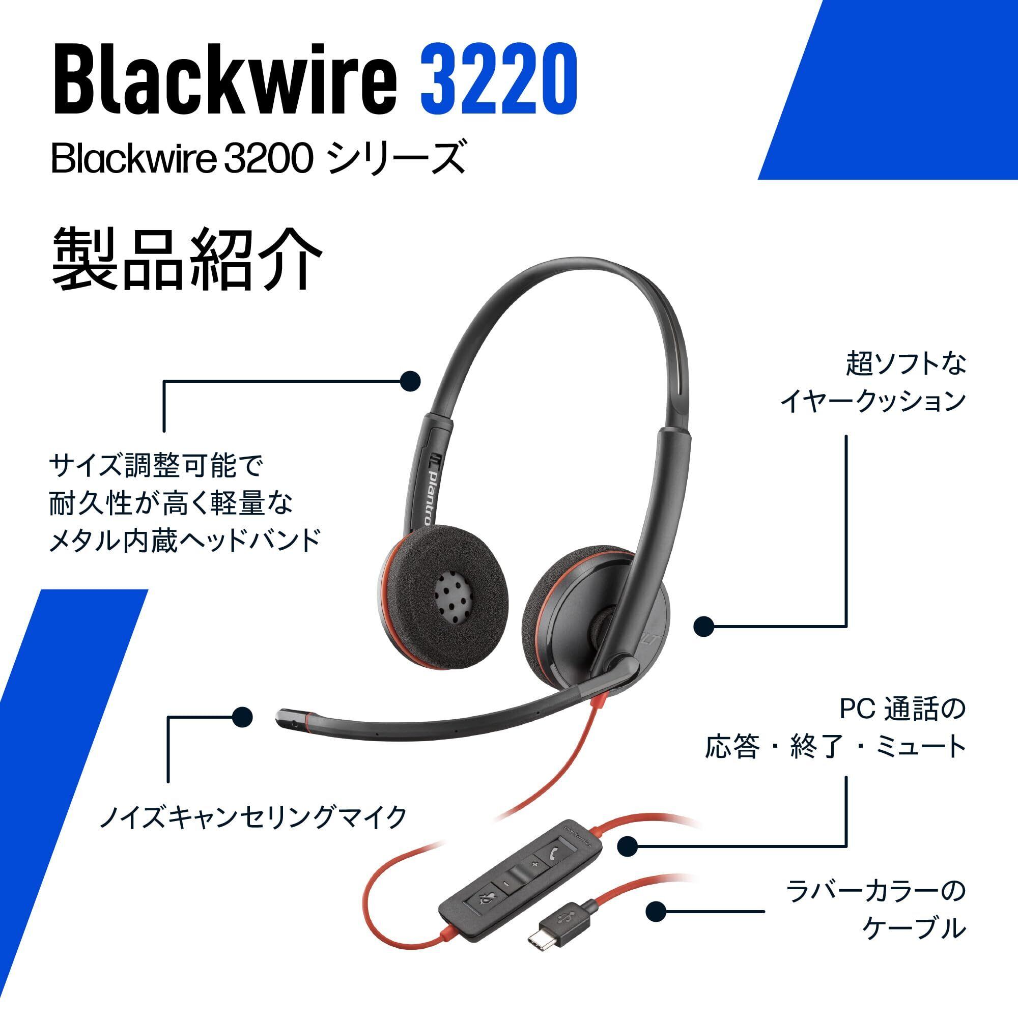**【2025年モデル】 Poly Blackwire 3220 両耳ヘッドセット 有線 ノイズキャンセリング USB-C/A 国内正規品 エコパッケージ 8X228A6AM**