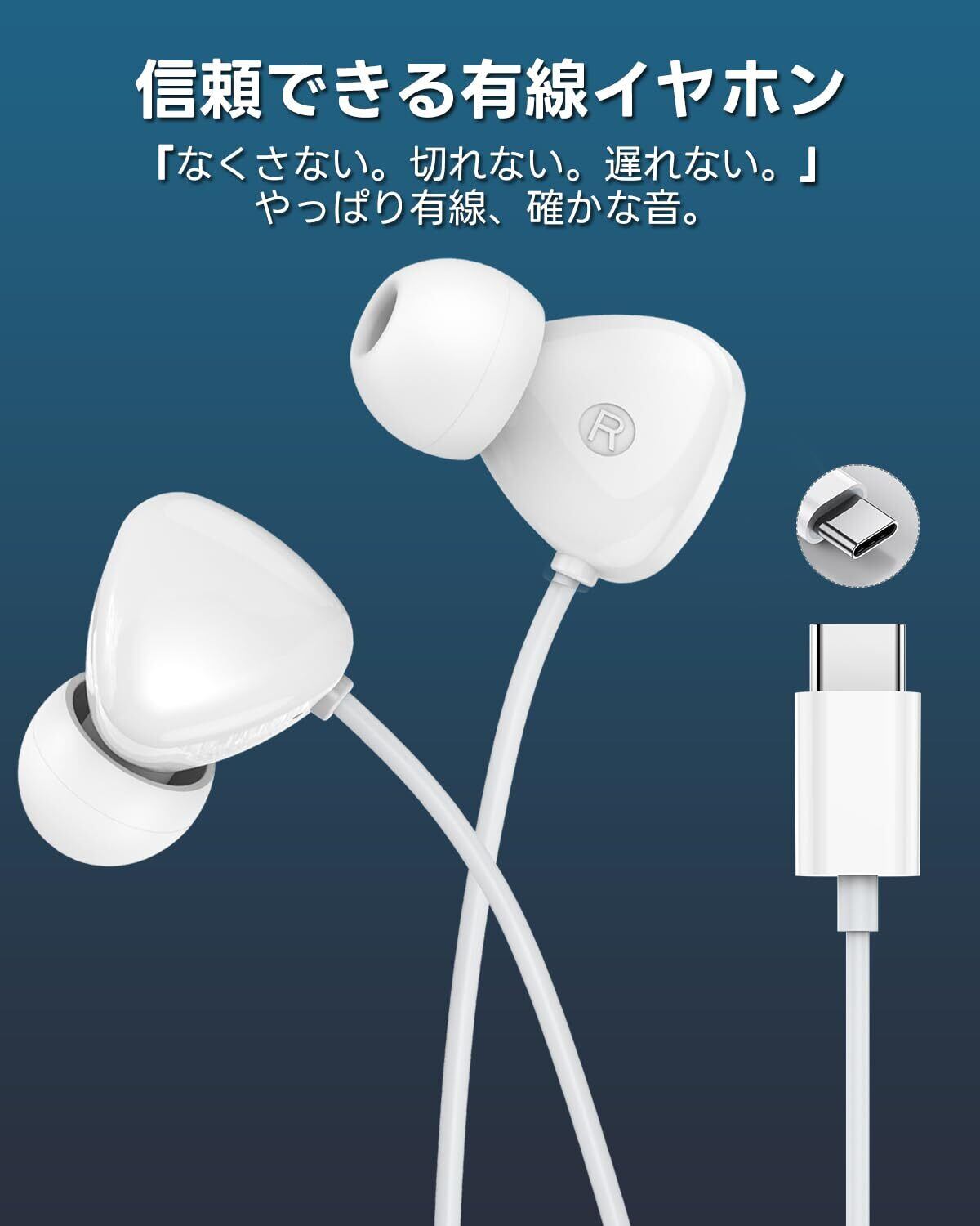 「『タイプC イヤホン』は、高音質を追求した優れたカナル型イヤフォンで、あらゆるデバイスで素晴らしい音楽体験を提供します!USB Type C接続に対応し、通話にも便利なマイクを搭載しているため、音楽を聴くだけでなく、携帯電話での通話もスムーズに行えます。」