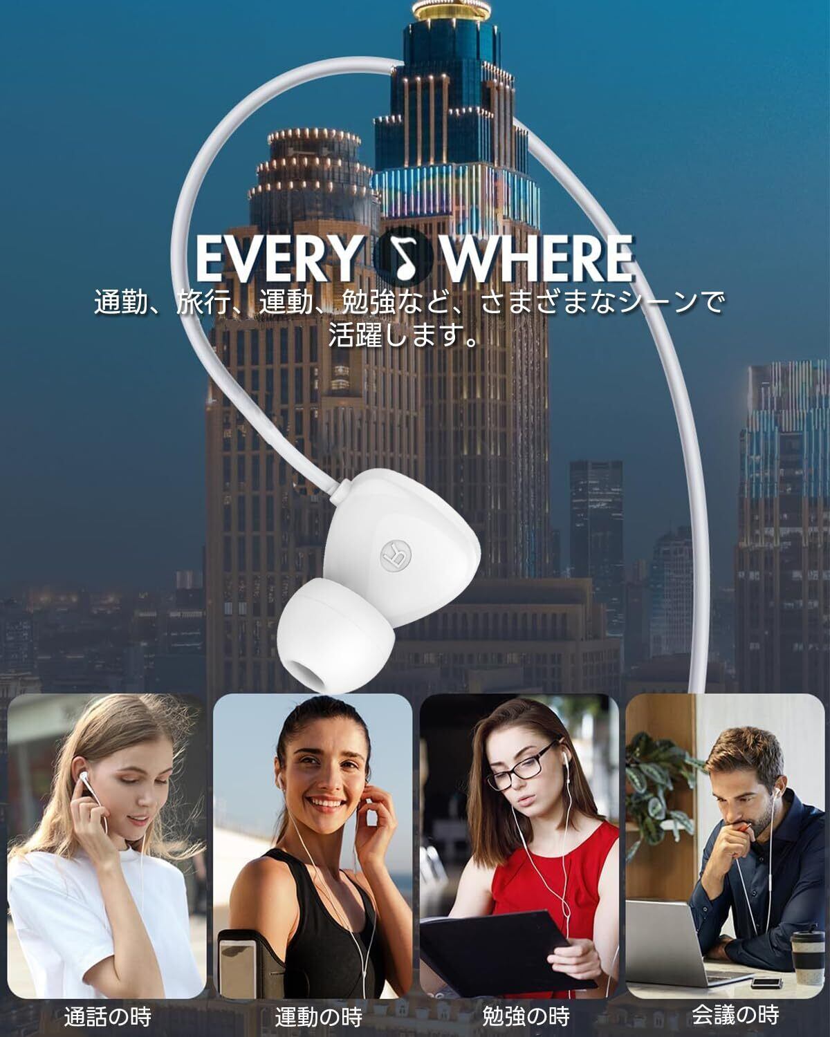 【人間工学に基づく設計・快適な装着感】イヤホンマイクは人間工学に基づいた設計を採用しており、耳へのフィット感が高く、長時間使用しても耳への負担が少ない設計となっています。また、運動中でも脱落しにくい安定した装着感を提供します。S/M/Lの3サイズのシリコン製イヤーピースが付属しており、個人の耳の形状に合わせて最適なものを選択できます。