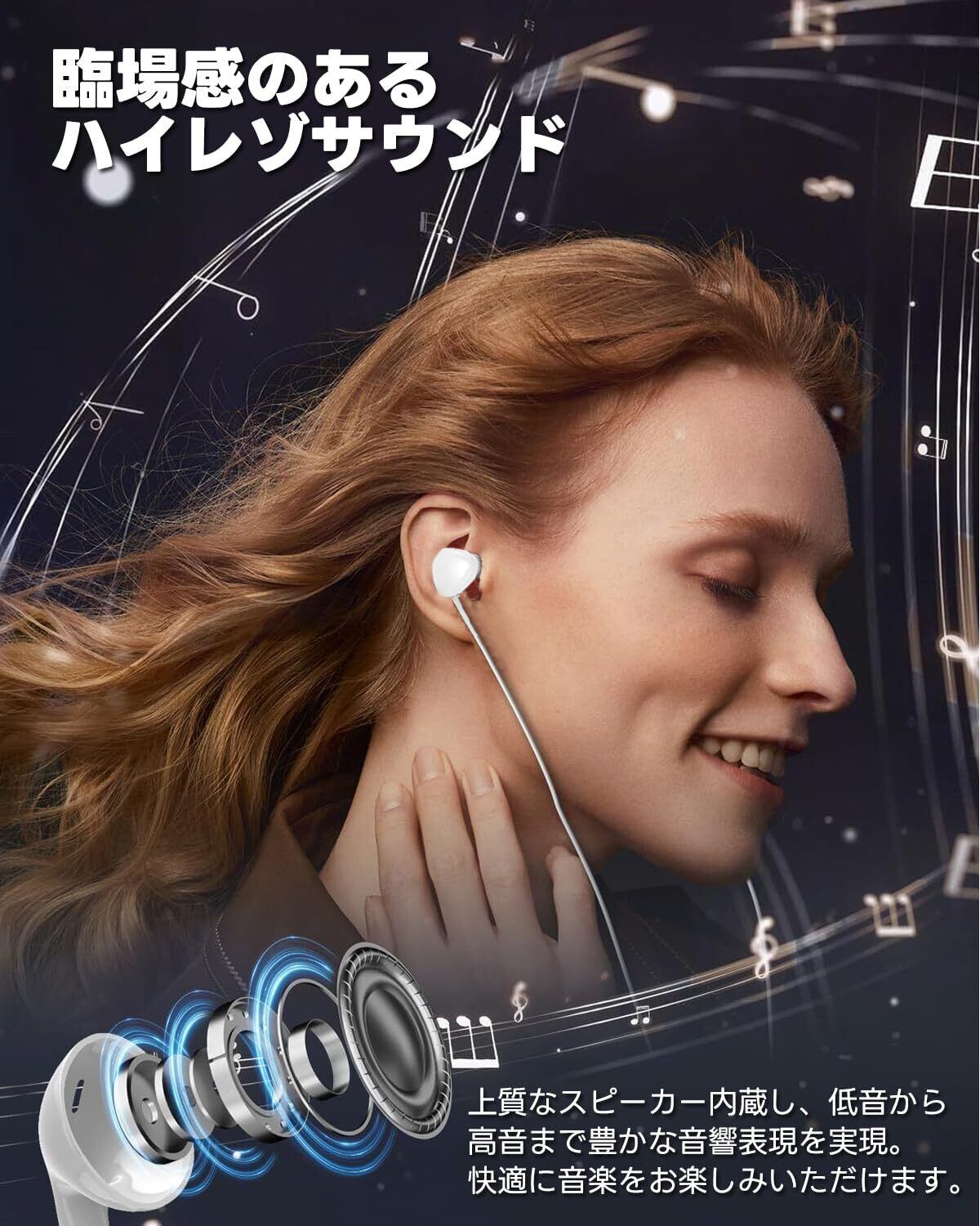 「このイヤフォンは、ハイファイサウンドを実現するために設計されており、迫力のある低音とクリアな高音を楽しむことができます。音楽や動画をより深く楽しみたい方に最適なアイテムです!」