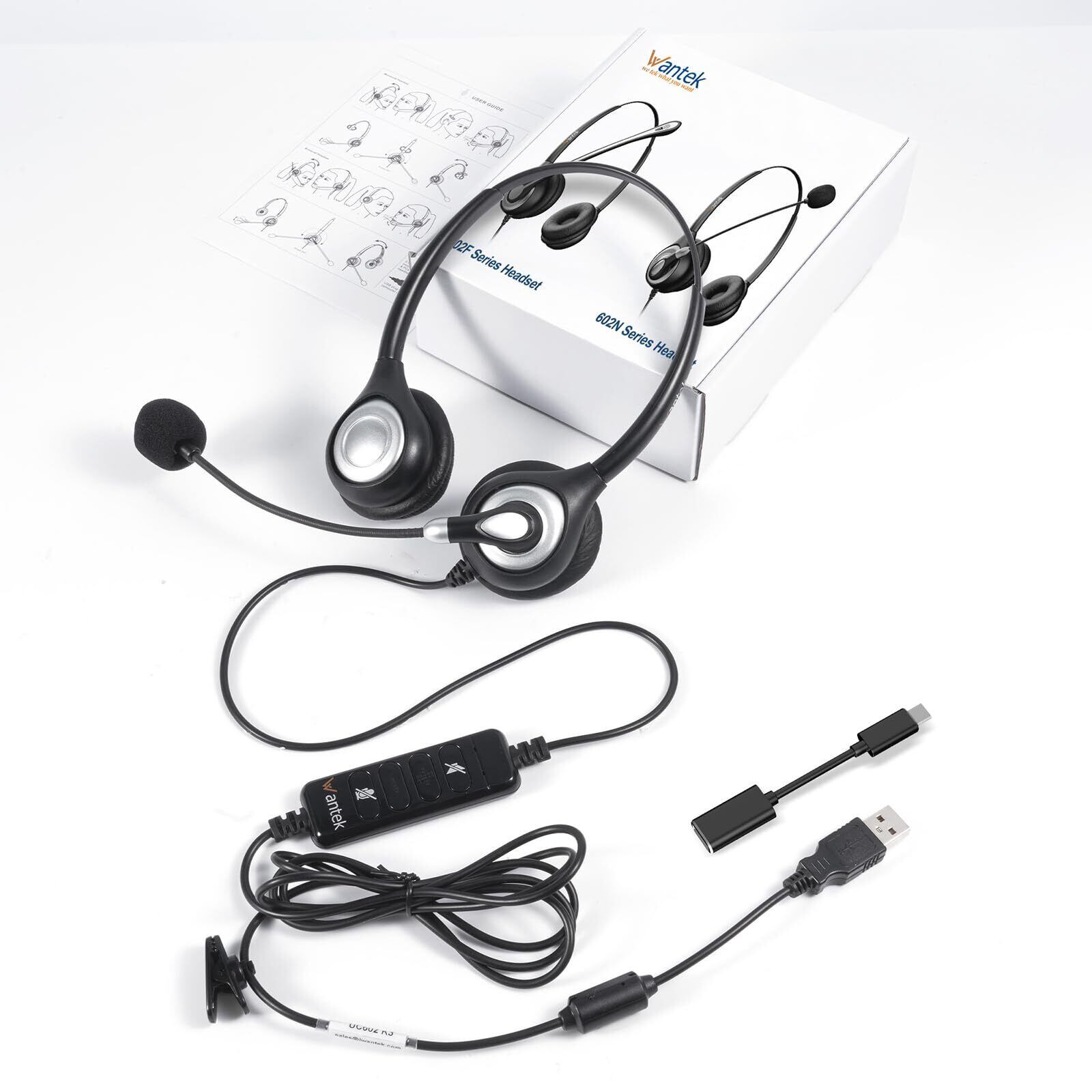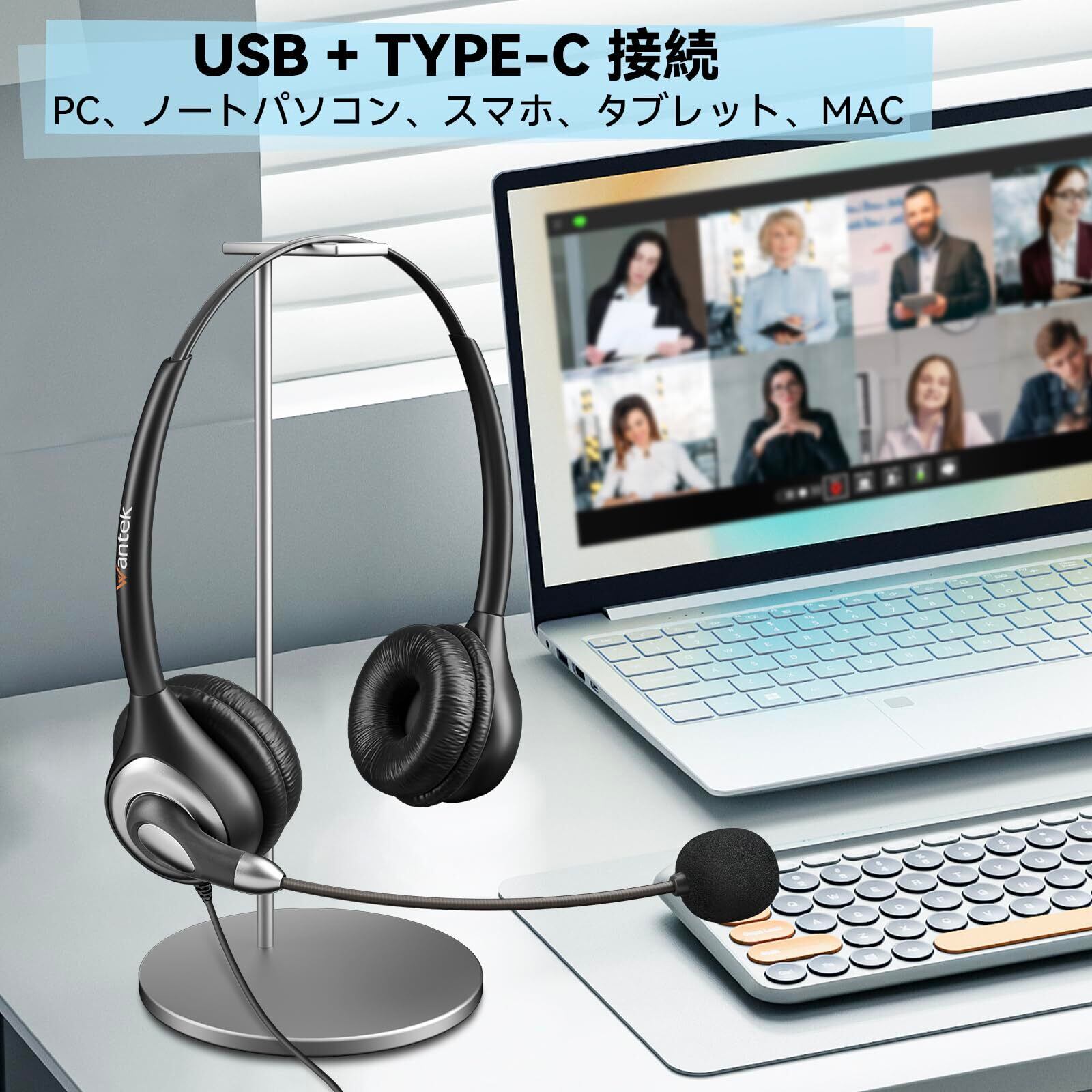 Wantek ヘッドセット 有線 マイク付き USB Type-C 両耳 ノイズキャンセリングマイク付き オンライン制御 PCスマホ用ヘッドホン Skype Zoom オンライン授業 Web会議 在宅勤務 業務用 リモートワーク コールセンターに適用される クリアな通話 超軽量 超快適 【適格請求書発行対象】