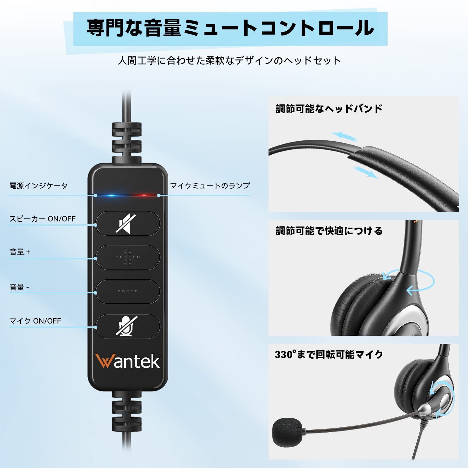 **Wantek ヘッドセット 有線 マイク付き USB Type-C 両耳 ノイズキャンセリングマイク付き オンライン制御 PCスマホ用ヘッドホン Skype Zoom オンライン授業 Web会議 在宅勤務 業務用 リモートワーク コールセンターに適用される クリアな通話 超軽量 超快適 【適格請求書発行対象】**