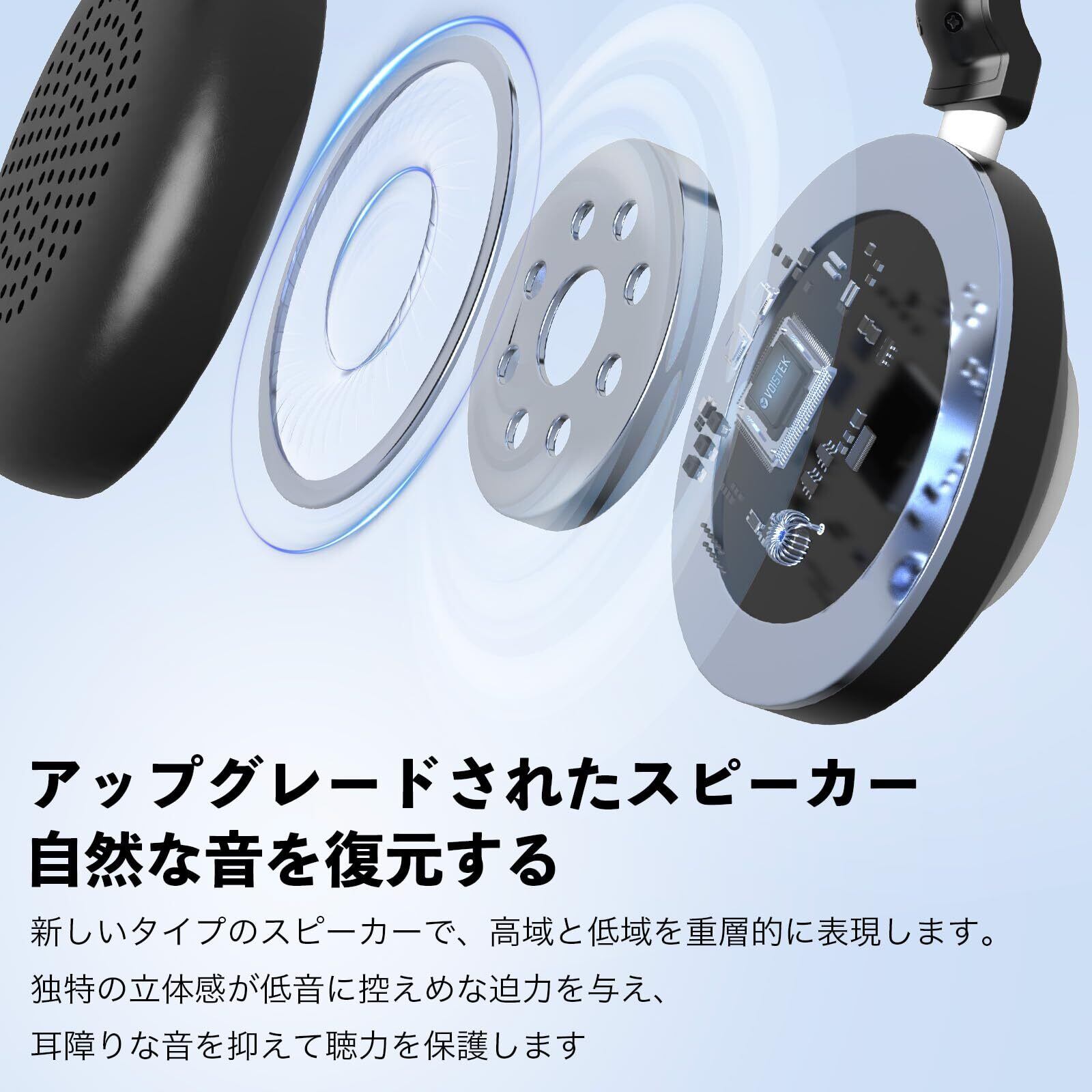 「超軽量設計と高品質なイヤーパッドを採用しているため、長時間の着用でも耳への負担が少なく、快適に使用できます。オンライン授業やテレワークの時間が長い方にもぴったりです。」