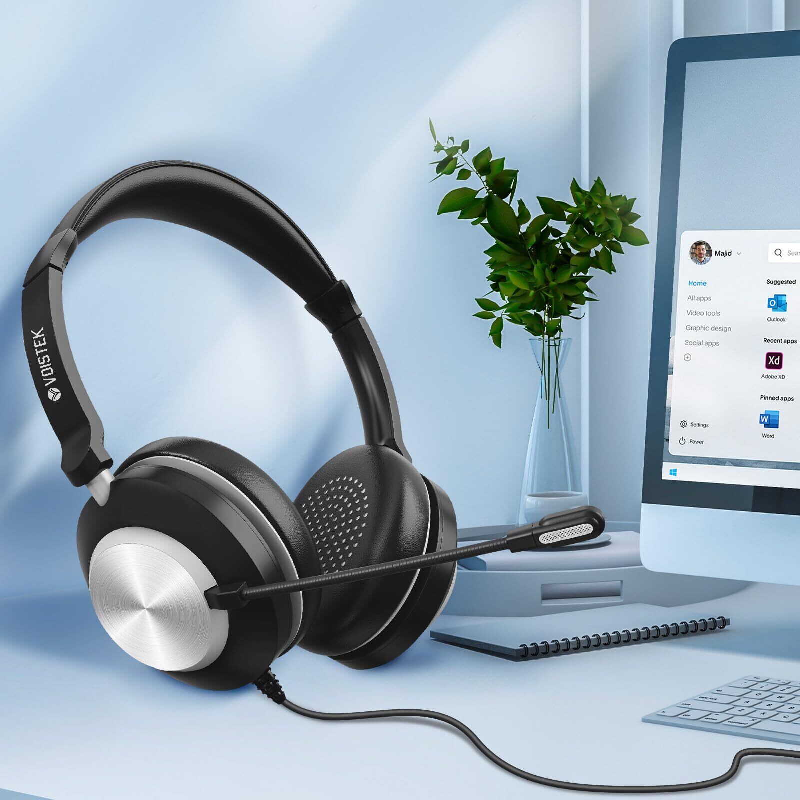 「『Wantek アップグレードヘッドセット』は、オンラインコミュニケーションやビジネスシーンに最適な製品です!新型ノイズキャンセリングマイクが周囲の雑音を効果的に排除し、明瞭でクリアな通話を提供します。長時間使用でも快適な設計が魅力です。」