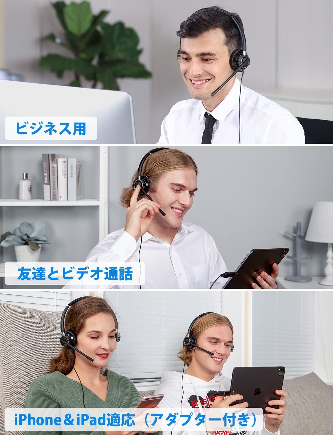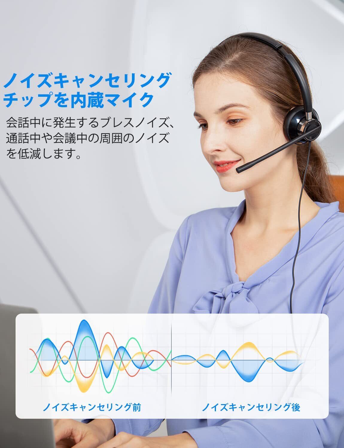 「軽量なデザインで作られており、長時間の着用でも疲れにくく、快適に使えます。テレワークやオンライン授業、さらにはコールセンター業務など、多様なシーンで活躍します。」