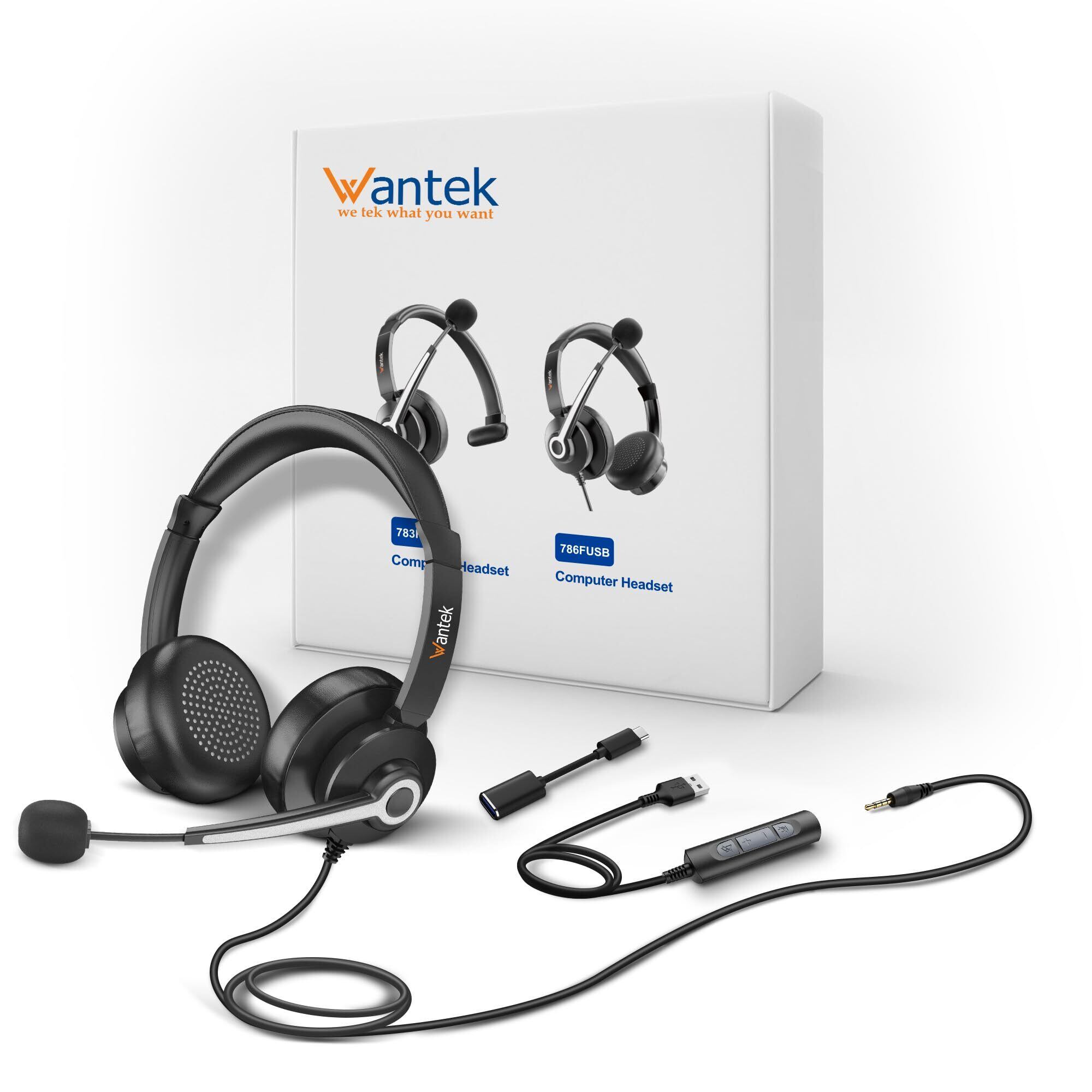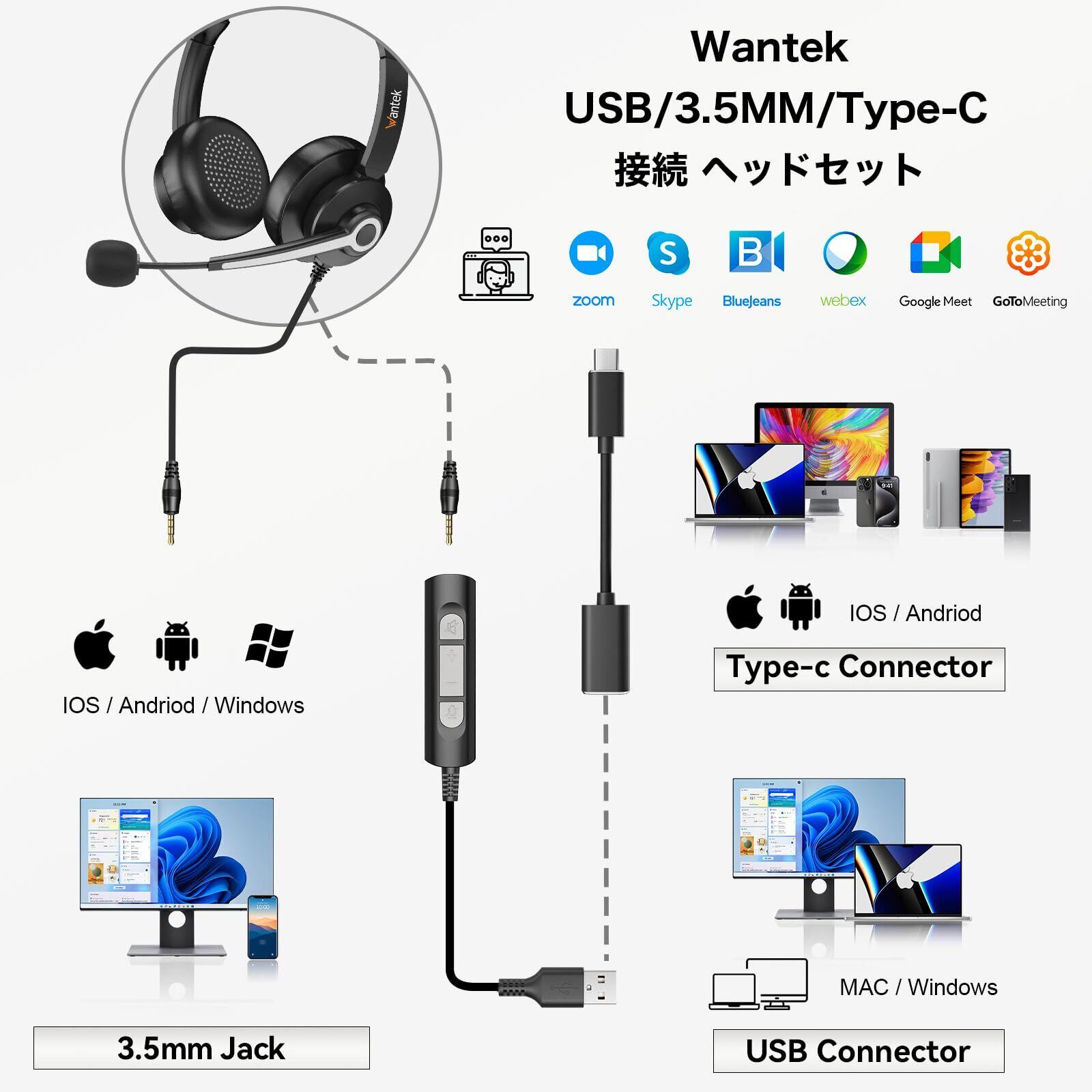 Wantek ヘッドセットUSB/TypeC/3.5mm 両耳 ノイズキャンセリングマイク付き 有線ヘッドセット Skype、Web会議、ボイスチャット、リモートワーク、テレワーク、在宅勤務に適用される プロ ビジネス PC用ヘッドホン