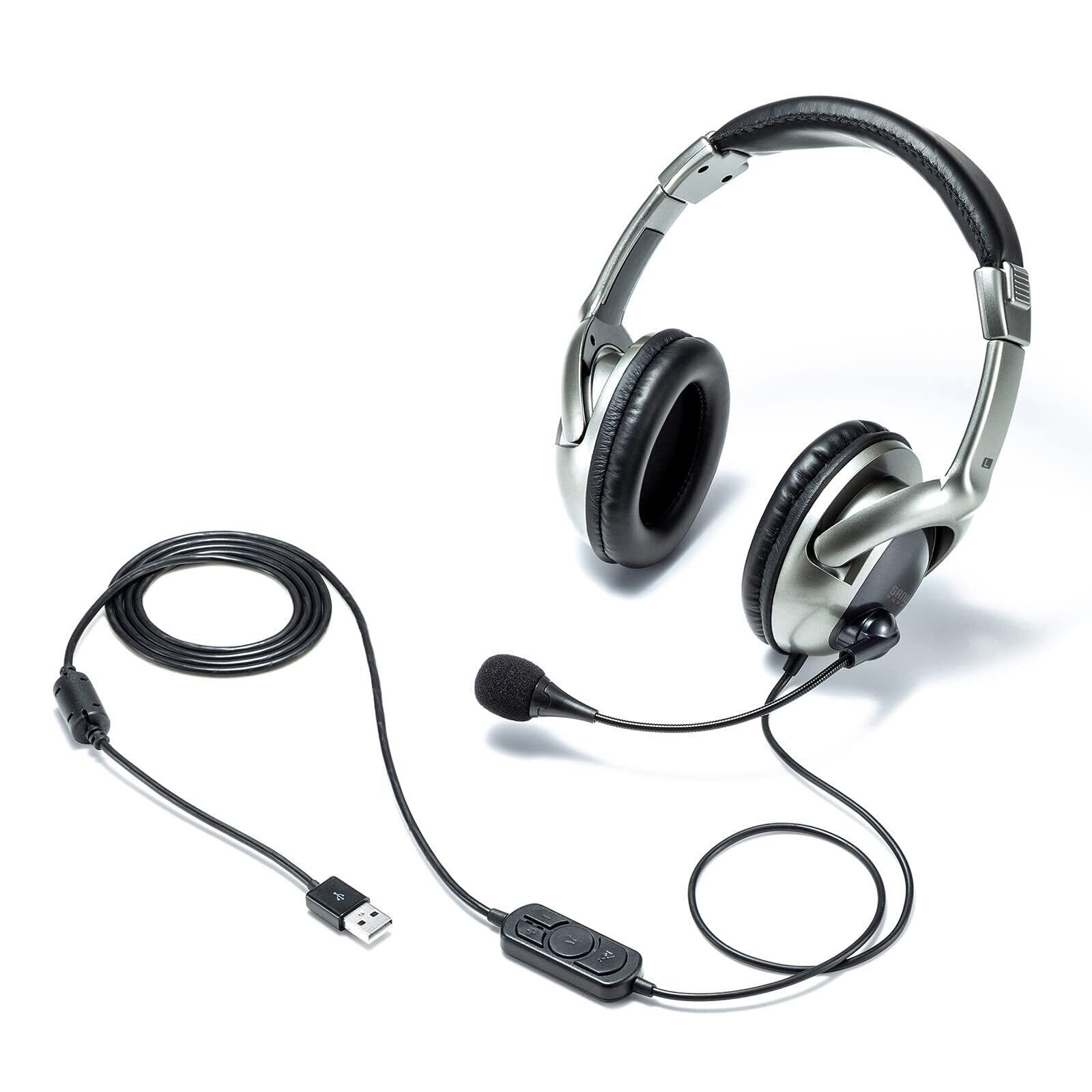 **サンワサプライ(Sanwa Supply) USBヘッドセット MM-HSU10GMN - ビジネスシーンやテレワークに最適なノイズキャンセリング機能付きヘッドフォン**