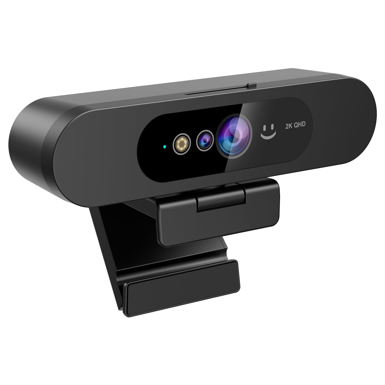2K PCウェブカメラ、ノイズキャンセリングマイク付きWindows Hello顔認識ウェブカメラ、4MP、プライバシーカバー、92度の視野、プラグアンドプレイ、オフィス、会議、教室、ライブブロードキャストに最適、複数のWin、Linux、Mac、Androidと互換性あり