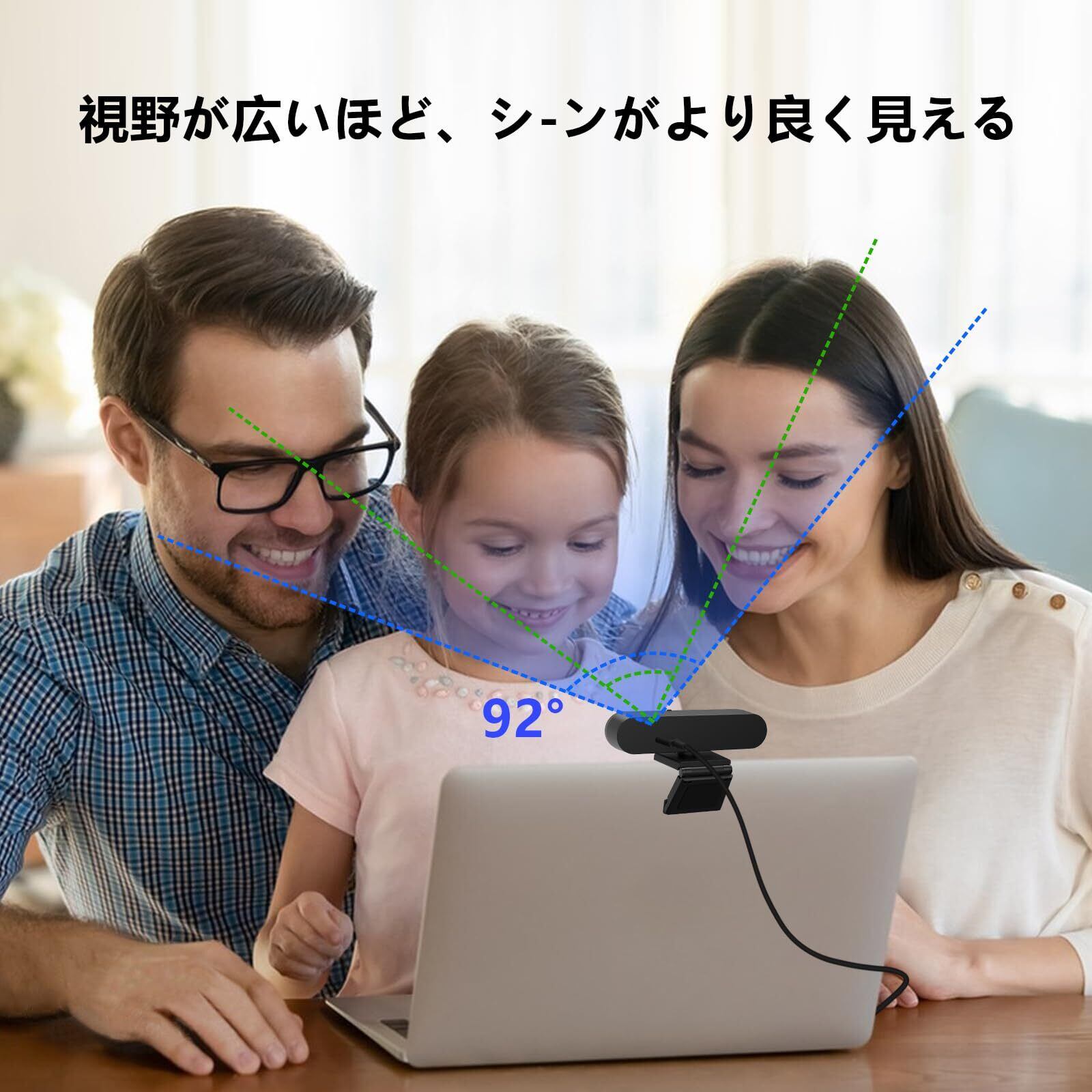 「92度の広角レンズを搭載し、一度に複数人を映すことが可能です。家族や友人とのグループビデオ通話、またはチームミーティングでも安心して使用できます。」
