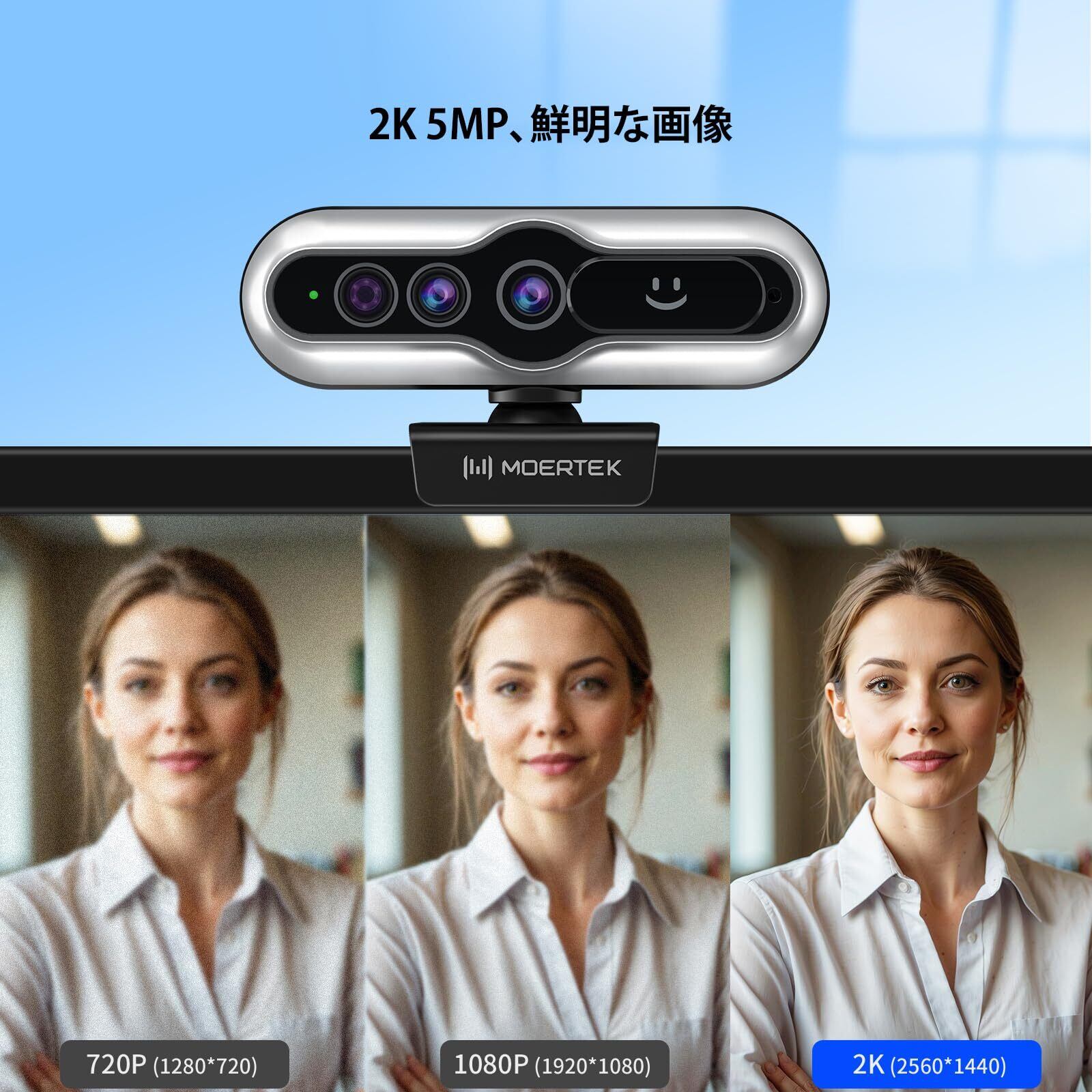 2K ウェブカメラ Windows Hello 顔認識 ウェブカメラ USBカメラ 5MP 自動光補正 プラグアンドプレイ 84度広角 リモートワークカメラ マイク付き プライバシー保護 在宅勤務/Web会議/ビデオ通話/オンライン授業 日本語取扱説明書付き