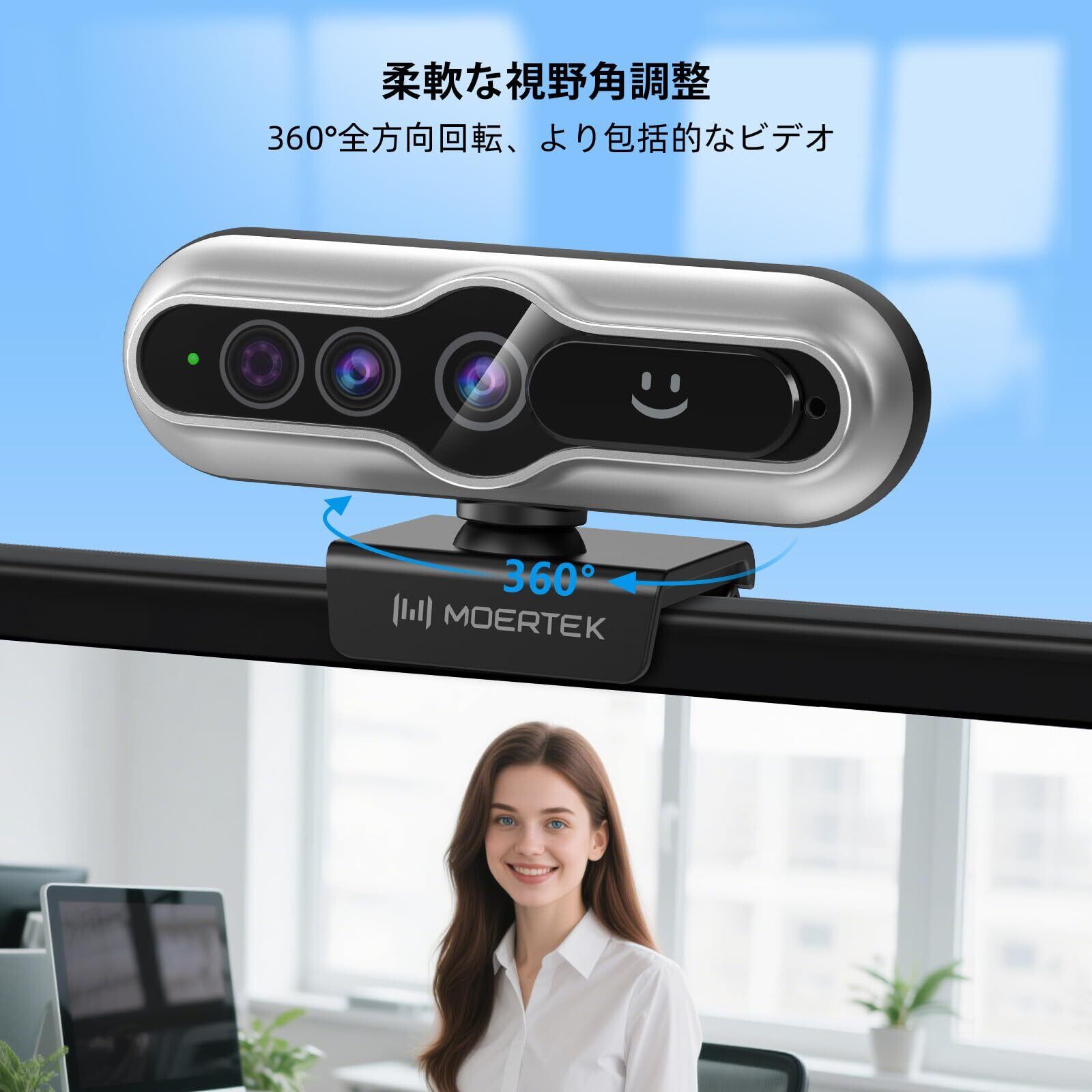 「『2K ウェブカメラ』は、最新の顔認識機能と自動光補正を搭載し、クリアな映像を提供する高性能なUSBカメラです!リモートワークやビデオ通話、オンライン授業に最適なアイテムで、84度の広角レンズがより広いシーンを捉えます。」