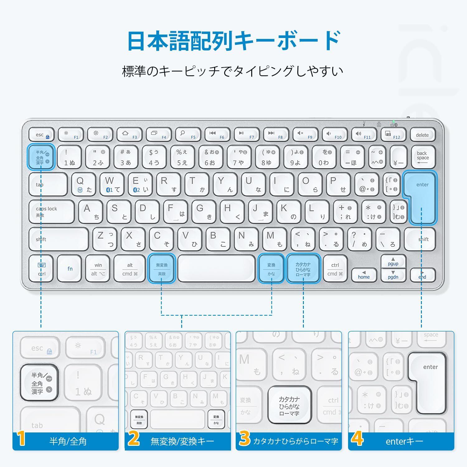 - JIS基準の日本語配列で快適なタイピング!