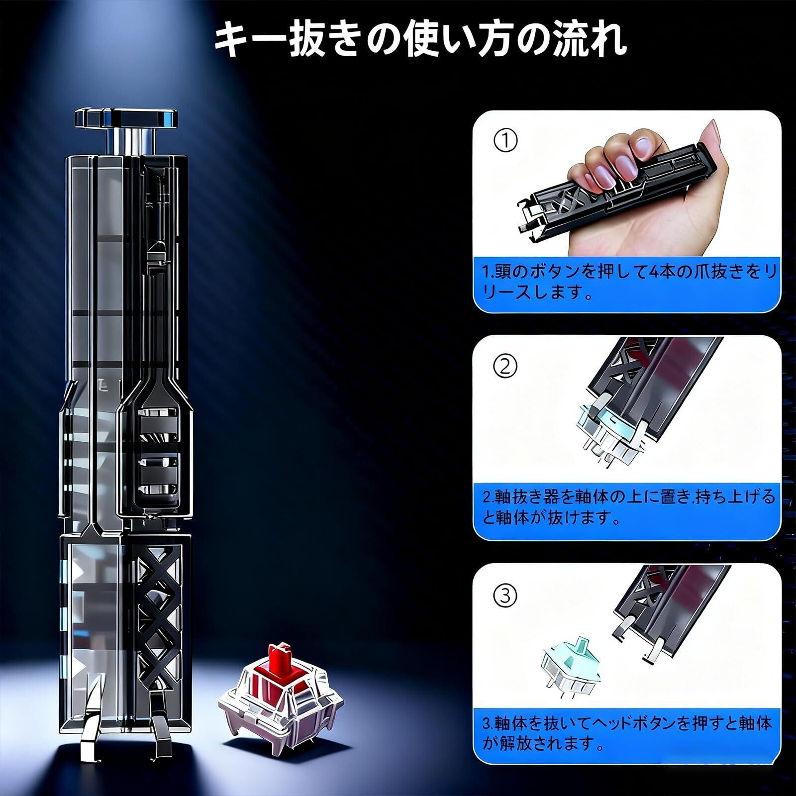 「このキーボードクリーナーは、4爪の設計により、しっかりとキーキャップを掴み、安全に外すことができます。特にホットスワップ対応のキーボードに最適で、キートップの交換作業をストレスなく行えます!」