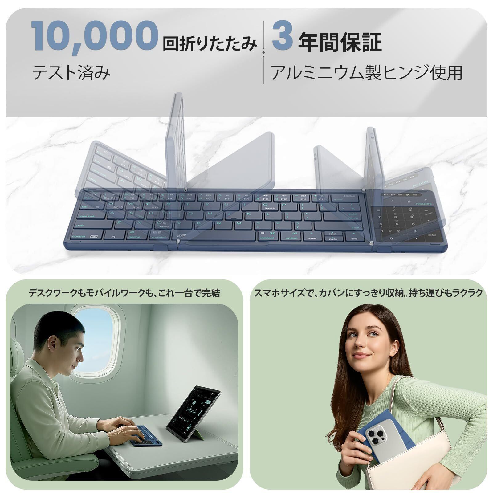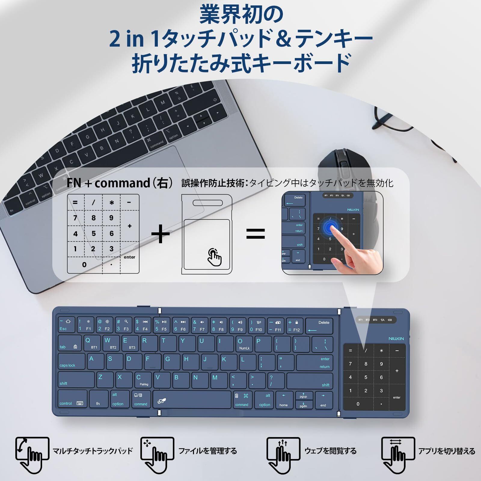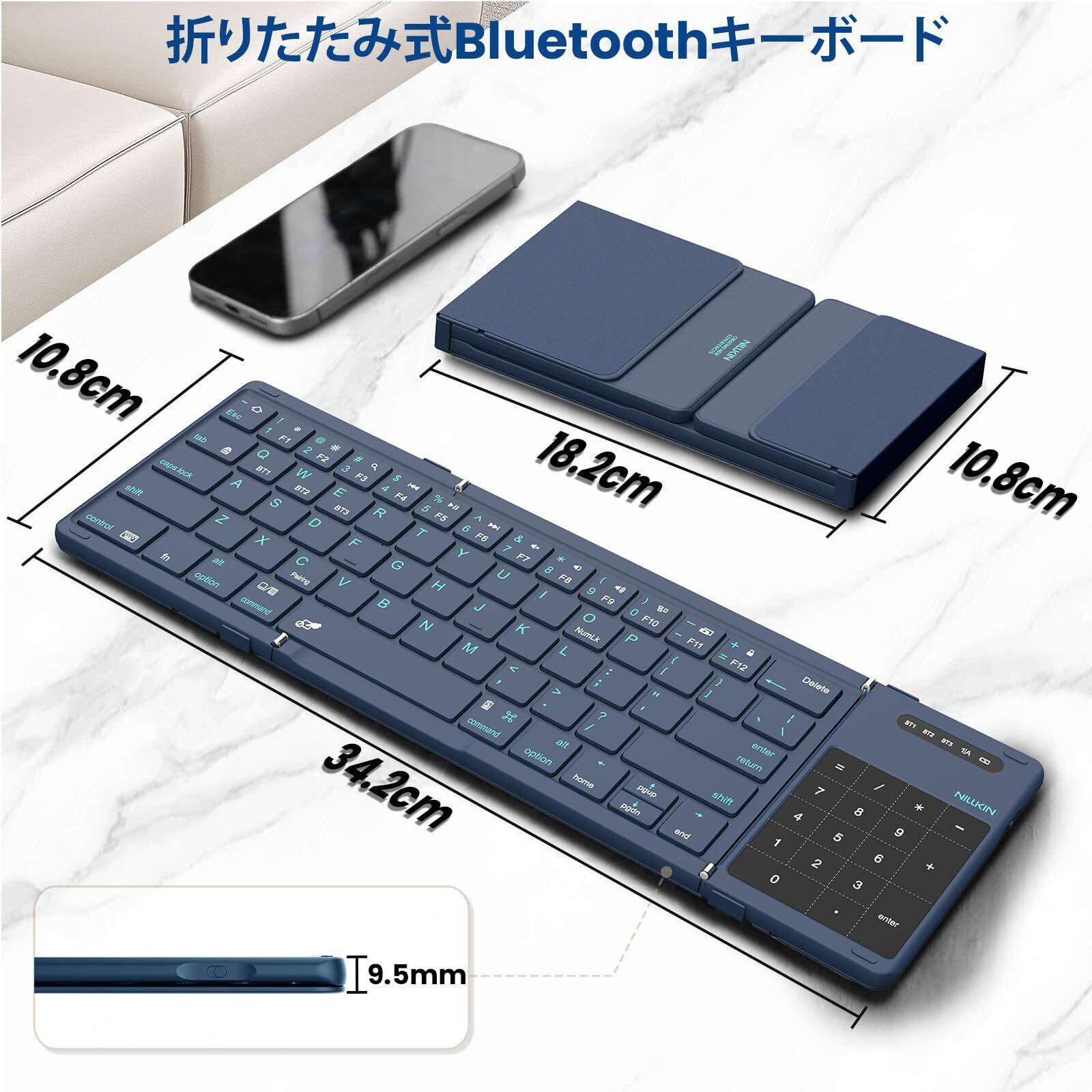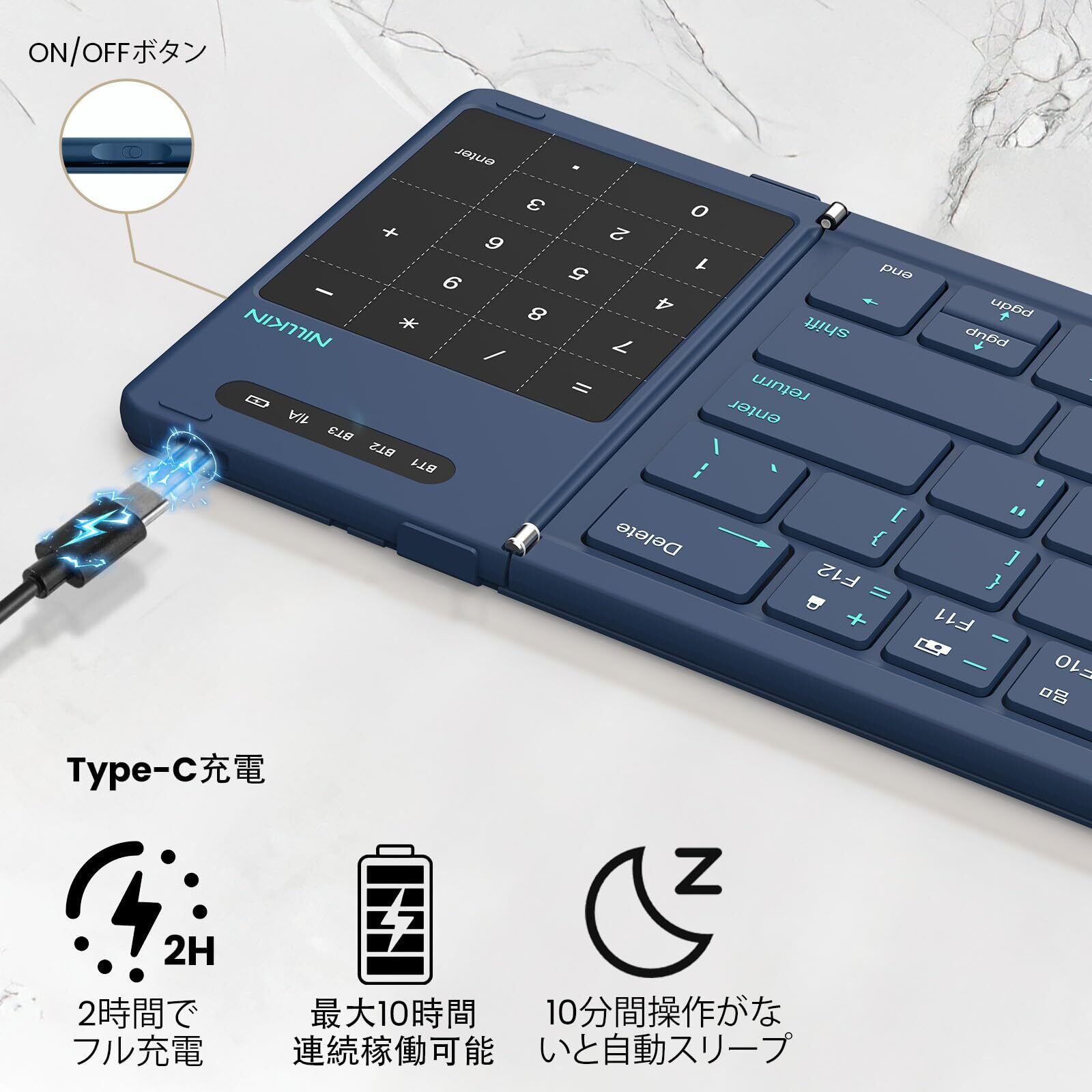 【2025年最新型】Nillkin 【公式直営店】 キーボード Bluetooth 折りたたみ式 ワイヤレス ipad キーボード ipad mini 薄型 軽量 3台同時接続 テンキー &タッチパッド搭載 Type-C充電式 トラックパッド マルチペアリング iOS/Android/Mac/Windows対応 パンタグラフ 収納バッグ付き 日本語説明書付 ブルー