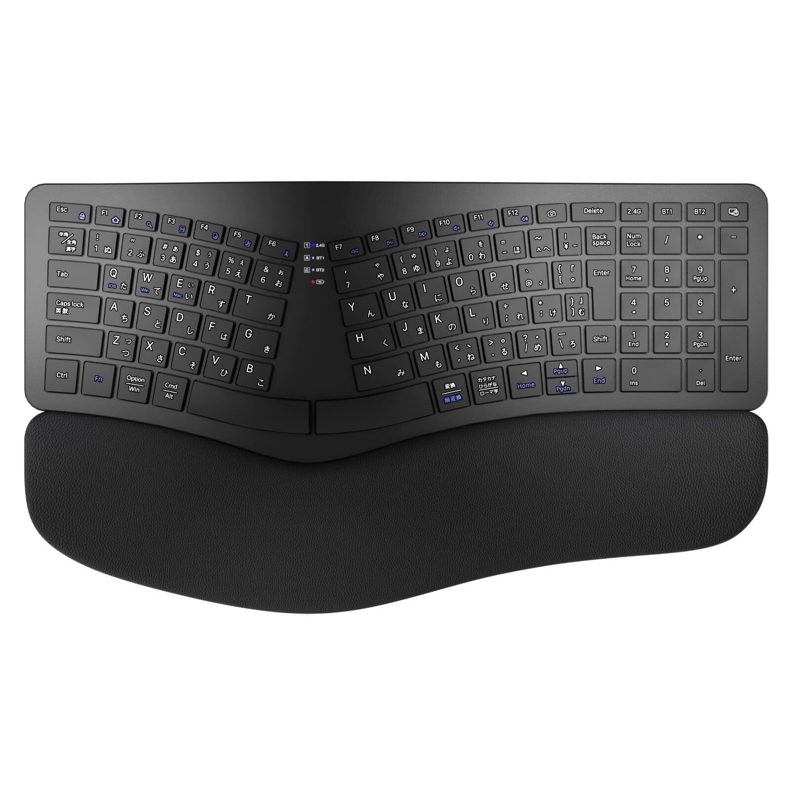 Ewin エルゴノミクス キーボード Bluetooth JIS配列 疲れにくい 2.4G+Bluetooth両対応 ワイヤレスキーボード 無線 テンキー付き フルサイズ 左右分離型 人間工学 Windows Mac iOS Android ブラック