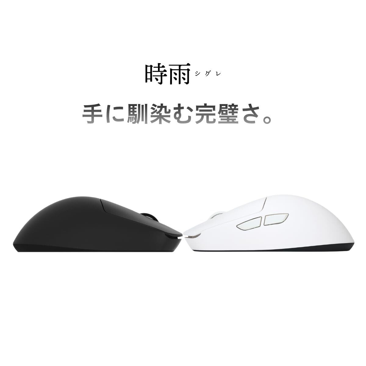 「『AIM1 時雨 SHIGURE ブラック』は、ゲームプレイを極限まで引き上げるために設計された高性能ワイヤレスマウスです!優れた左右対称デザインと軽量な45gのボディが、快適な操作を提供します。」
