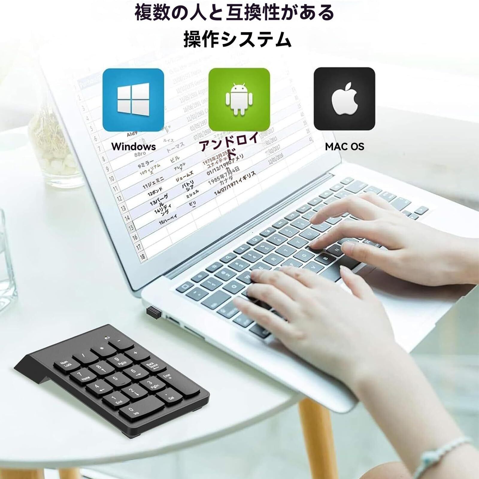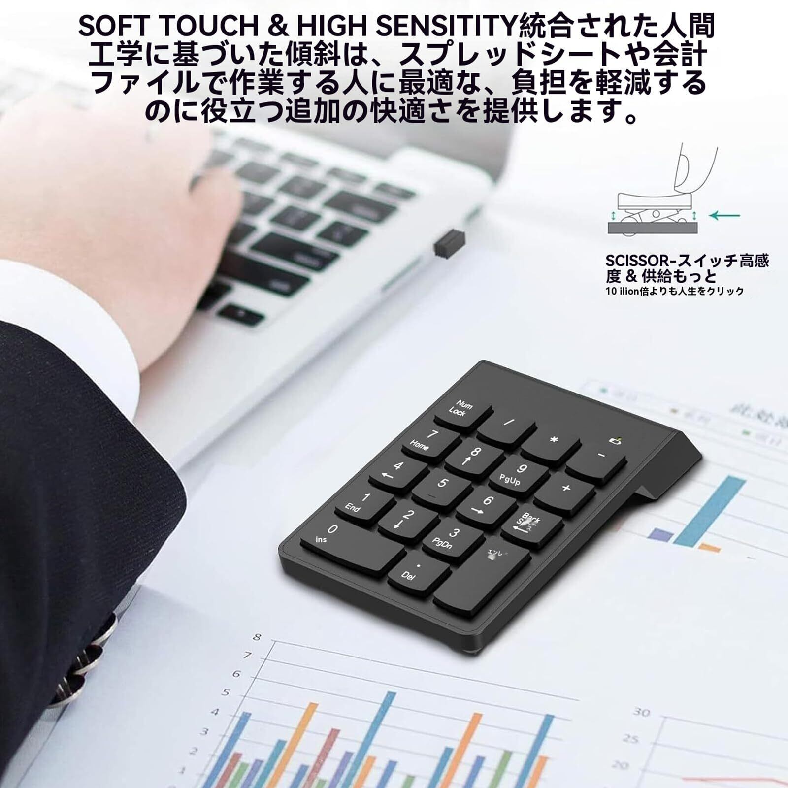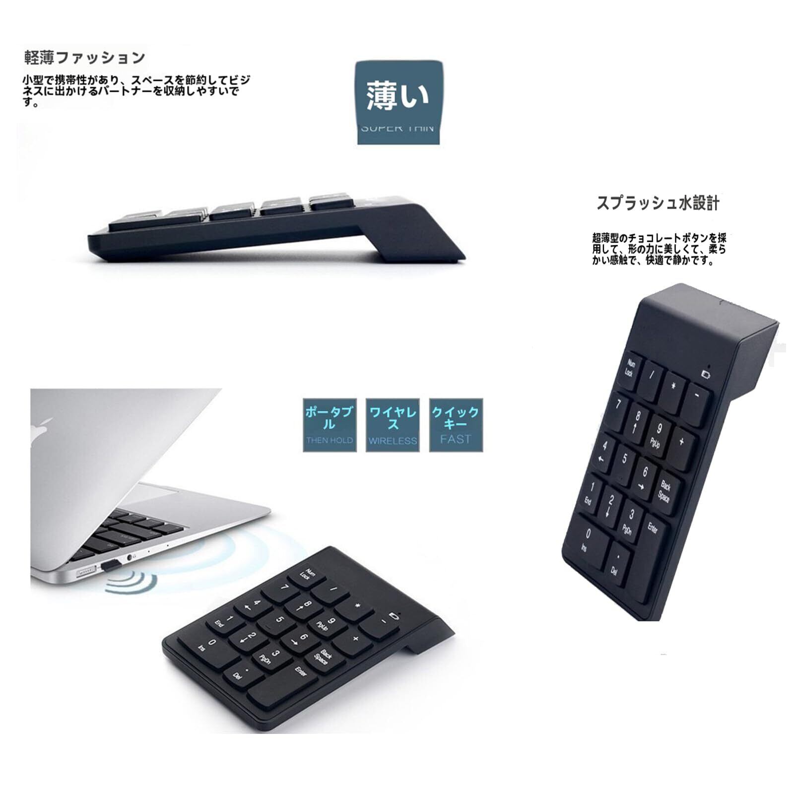 【超軽量設計】 この2.4Gワイヤレステンキーは、軽量でコンパクトな設計を採用しており、どんな場所でも簡単に持ち運ぶことができます。重くて不便な有線キーボードに縛られることはありません。