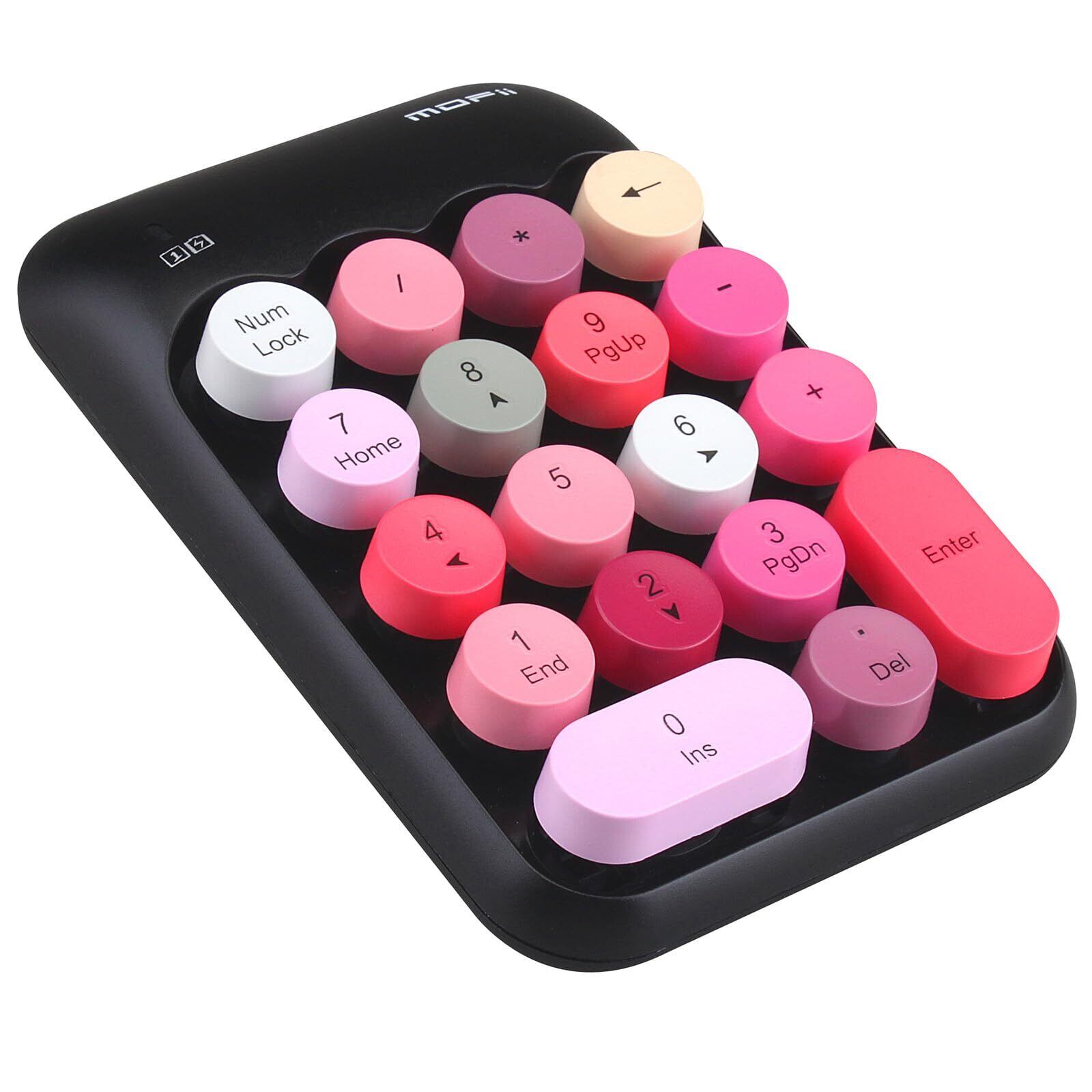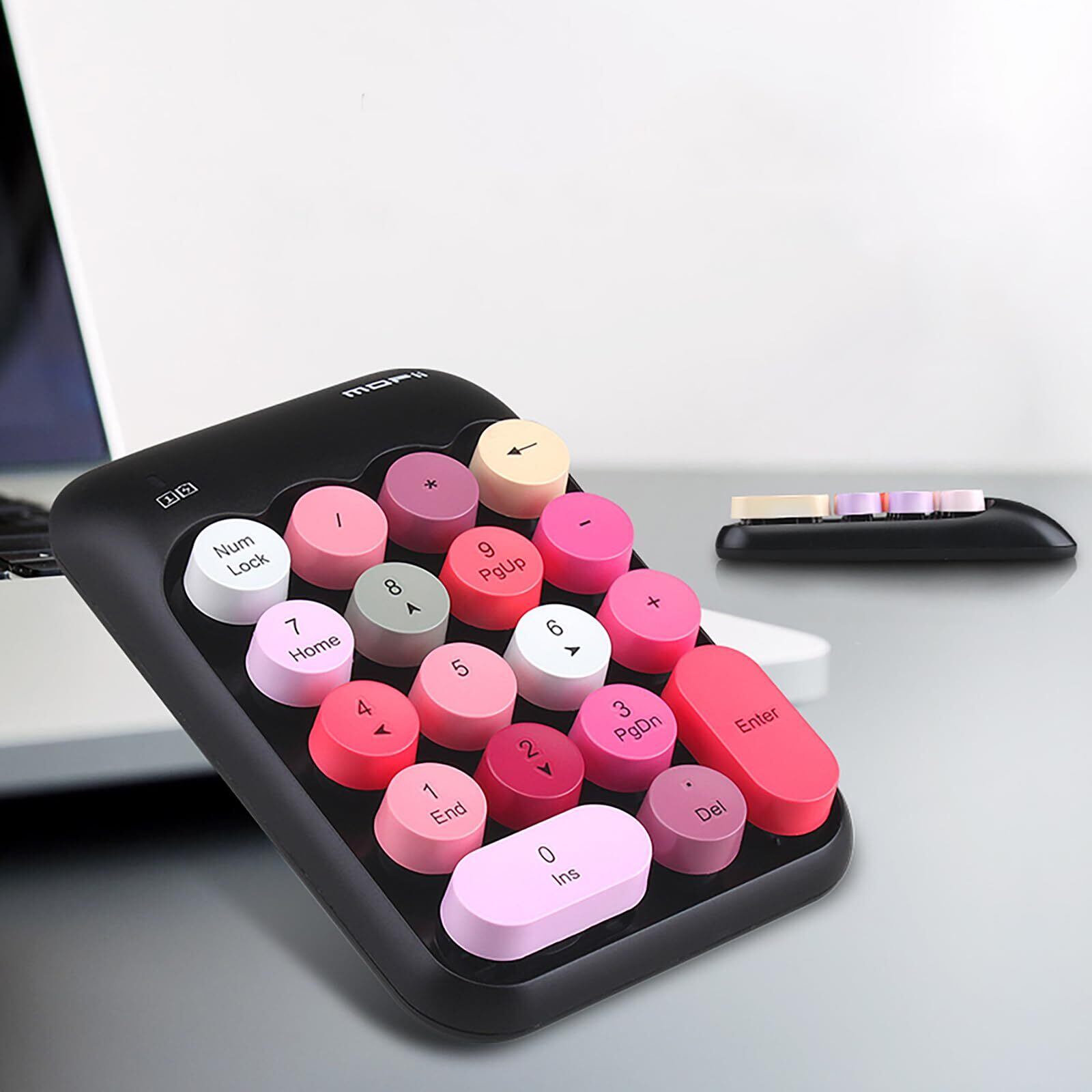 可愛い 2.4G ワイヤレステンキー レシーバー付属 18キー メンブレン 女性 子供 おしゃれ カラフル 静音 PC、ノートブック対応 (黒)