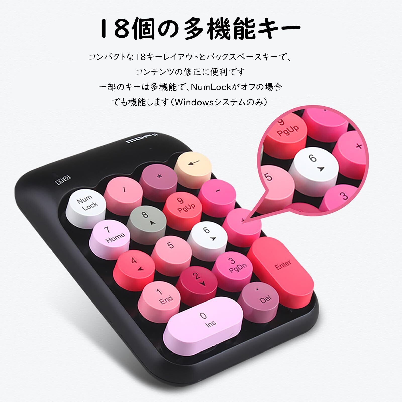 **可愛い 2.4G ワイヤレステンキー レシーバー付属 18キー メンブレン 女性 子供 おしゃれ カラフル 静音 PC、ノートブック対応 (黒)**