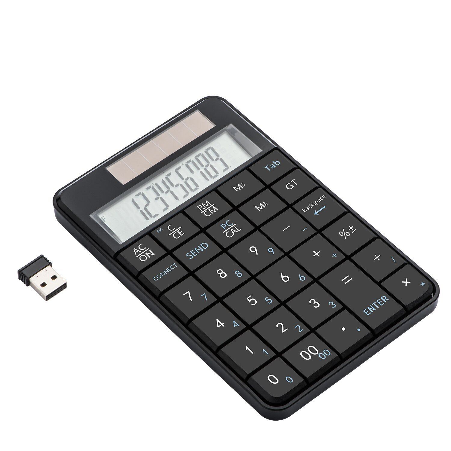 MCSaite 電卓&無線テンキー 2in1 ワイヤレス数字キーボード USBレシーバー付き 29キ 小型 太陽光発電電卓 10桁 多機能ナンバーパッド PC/Laptop/ノートブックなどに対応