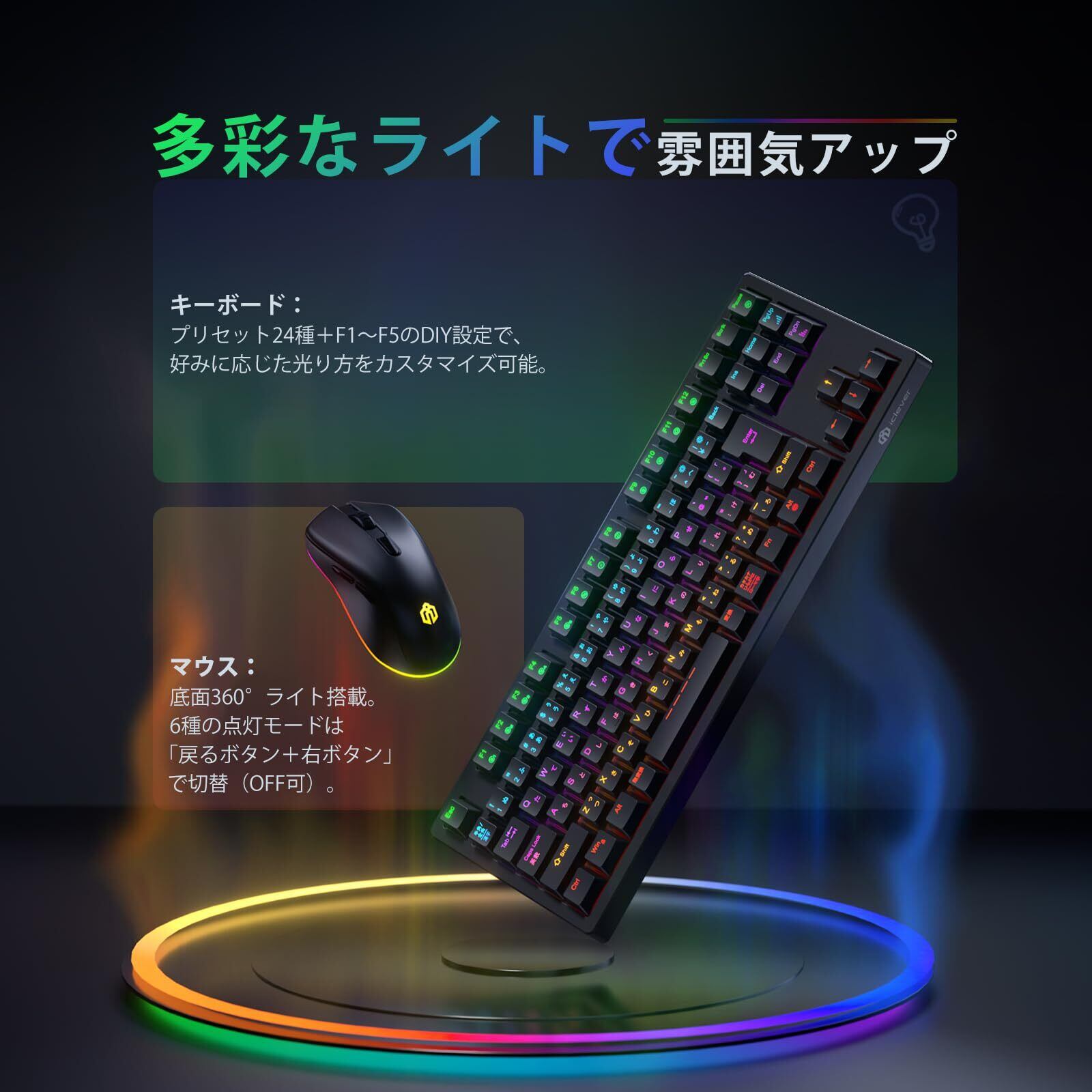 iClever ゲーミング キーボード マウスセット 有線 マクロ対応 カスタマイズ 24種類バックライト 赤軸 キーボード メカニカル テンキーレス 日本語配列 91キー 80%サイズ マウス6段階DPI ゲーム/オフィス用 Windows対応 G06Combo (ブラック)