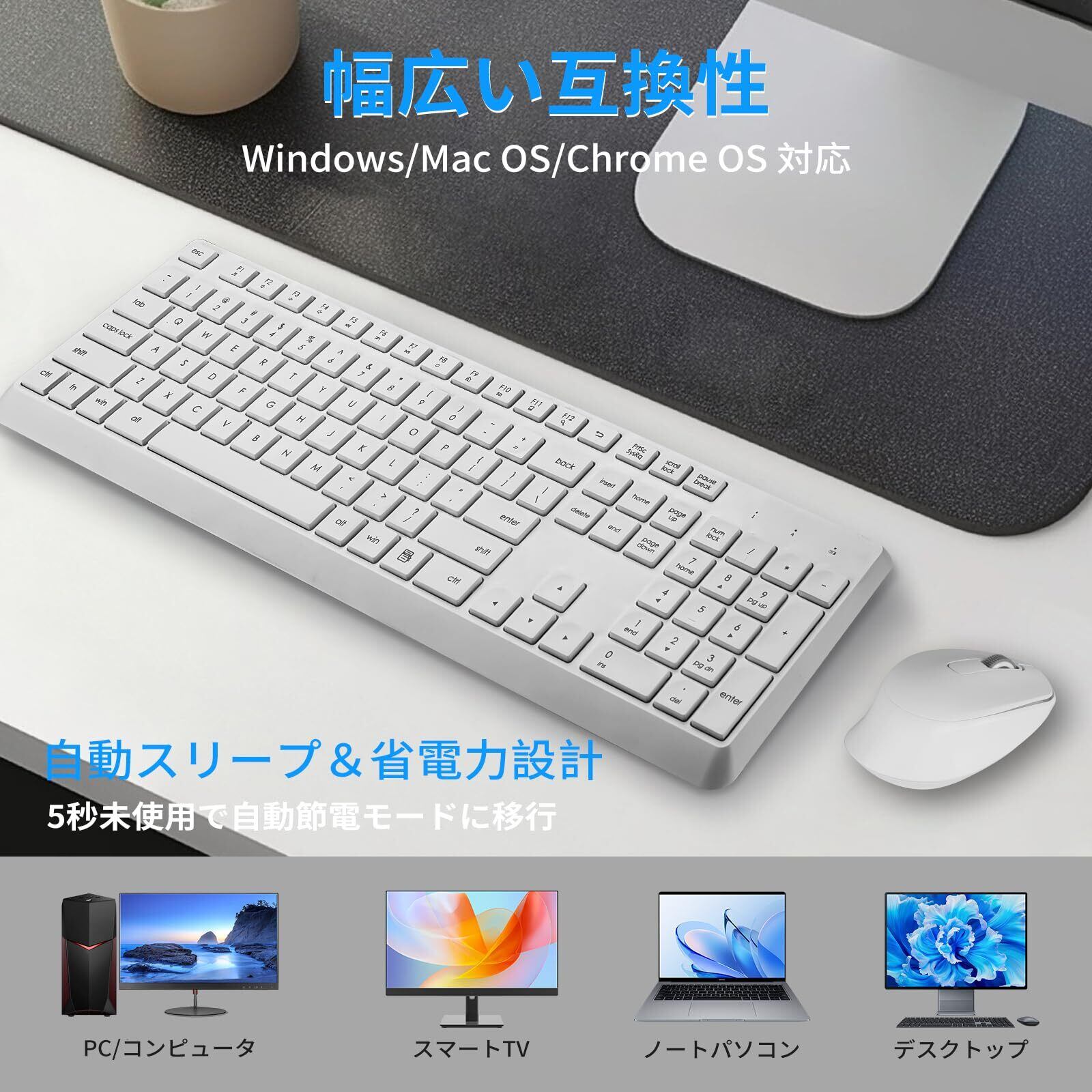「2.4GHz無線接続に加え、即座に使用開始できる簡単な設定プロセス。Windowsだけでなく、Macとも互換性があり、多様なデバイスで快適な使用が可能です。」