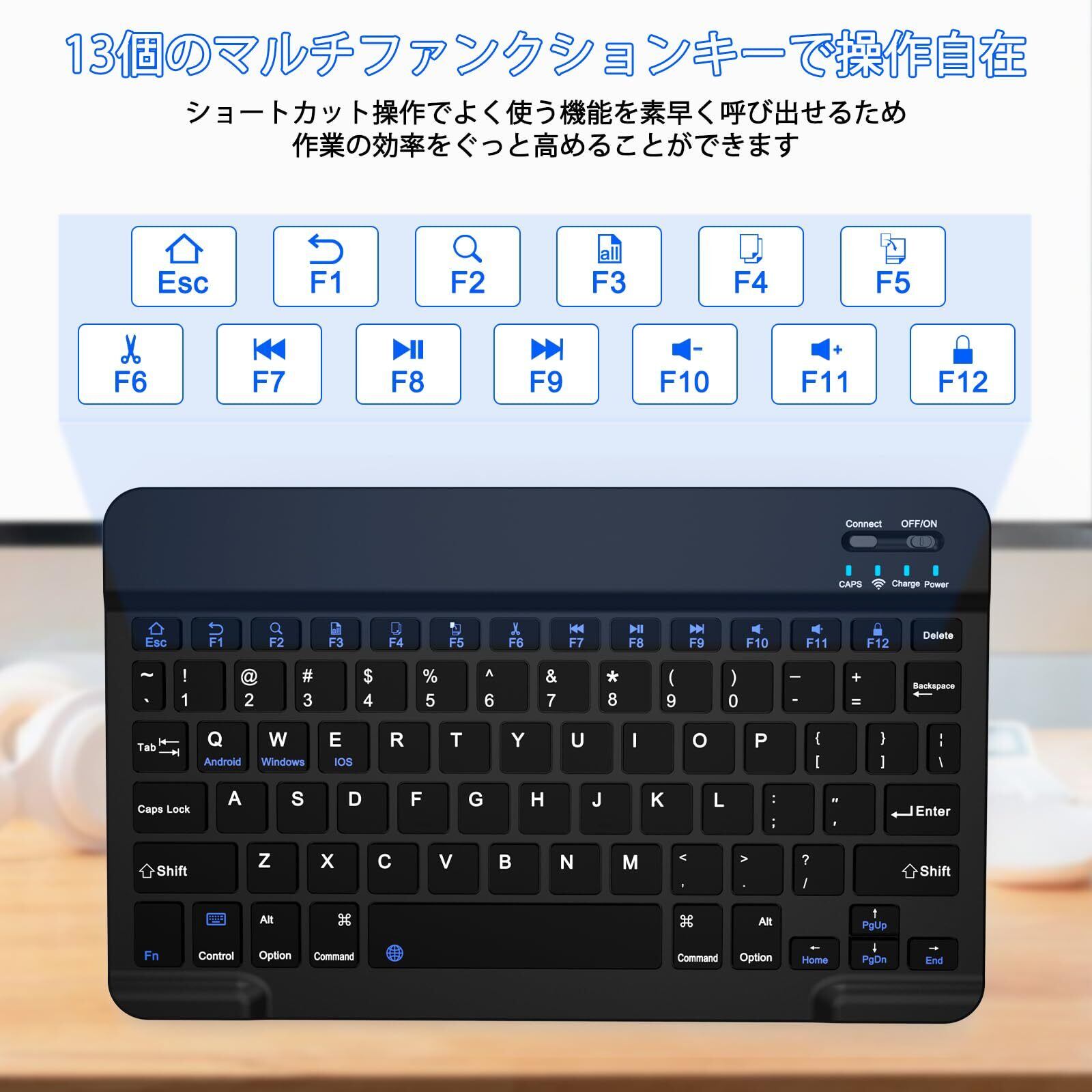 【幅広い互換性と簡単接続ですぐに使える】 主要なOS(Windows 10/8/7, Mac OS, iPad OS, iOS, Android)を広くサポート。日本語配列のキーボードではなく国際的な配列ですが、付属の日本語説明書があるため、初めての方でも簡単にペアリングしてすぐにお使いいただけます。ご自宅やオフィスのメインマシンや、タブレットの外付けキーボードとして活躍します。