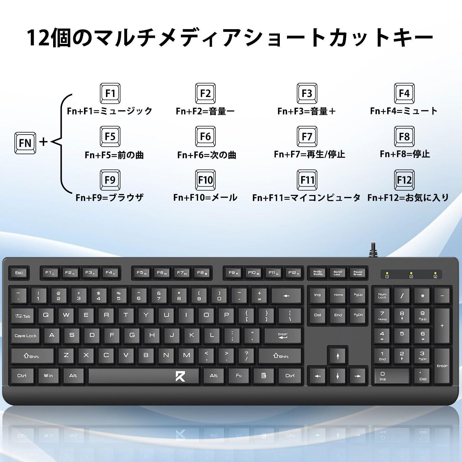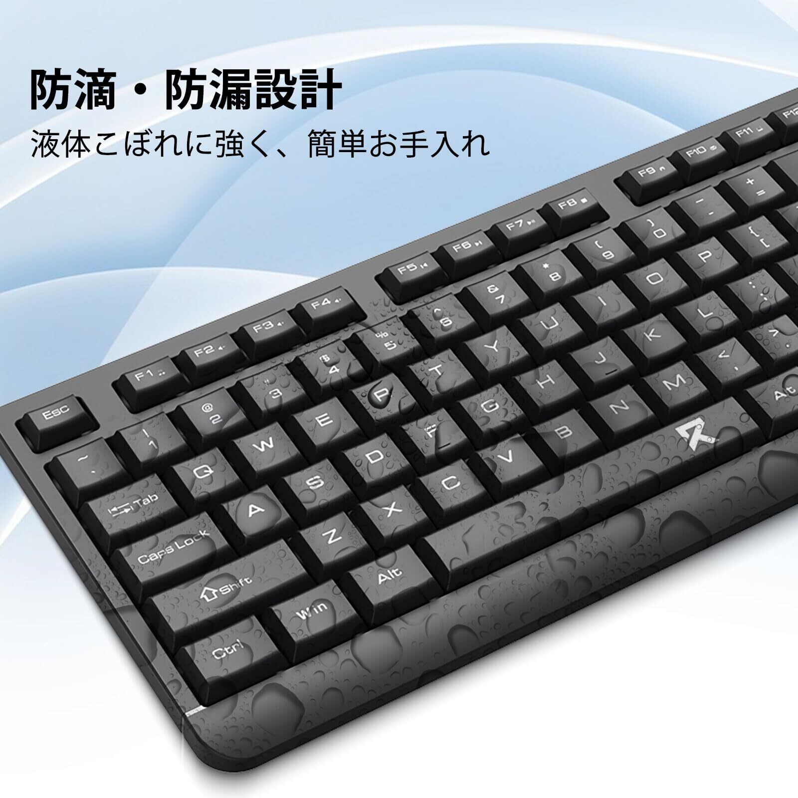 Redragon 有線 キーボード マウスセット 静音 フルサイズ メンブレン 防水 薄型 パソコンキーボード 光学式マウス テンキー付き 人間工学設計 高耐久性 Windows/Mac 対応 プラグ&プレイ オフィス 在宅ワーク (ブラック)