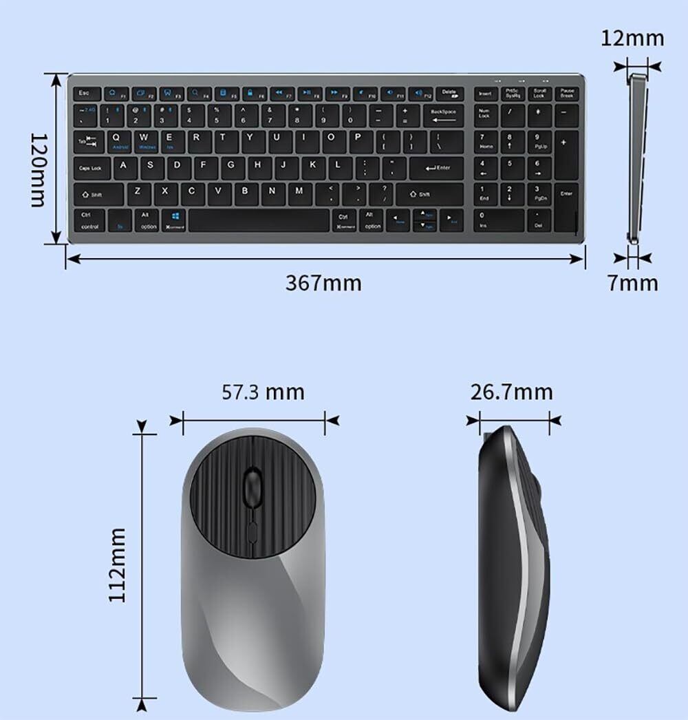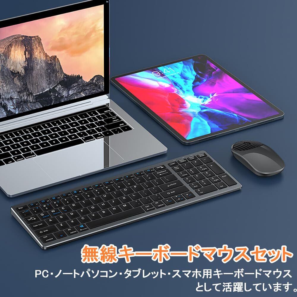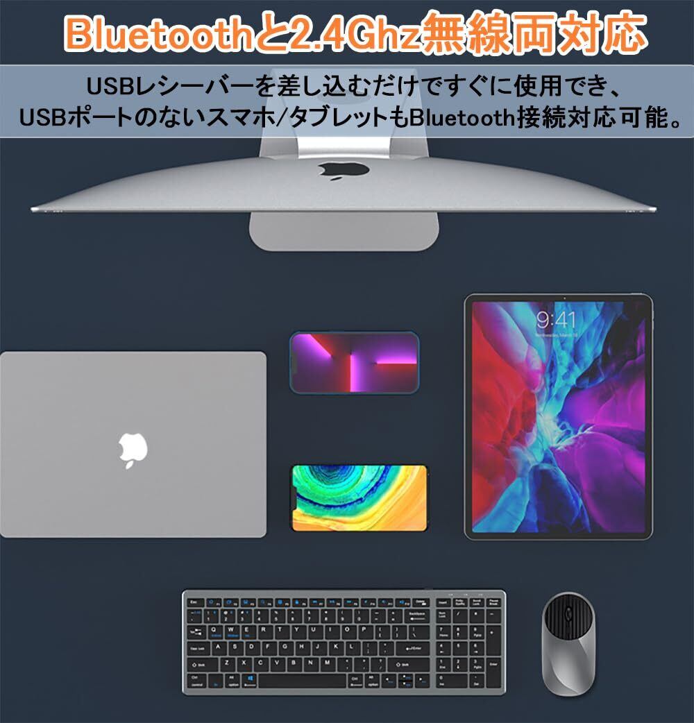【優れた汎用性·bluetoothとUSB接続両対応】無線キーボードマウスにbluetooth 、ワイヤレス2.4GHzの 2つの接続方式を搭載し、Windows、Mac、ios、Androidシステムに対応、タブレット、ipad、パソコン、ノートパソコン、スマホ、iphoneなどbluetoothやUSBポート搭載機器に接続でき、汎用性が非常に高いブルートゥースキーボードとマウスセットです。