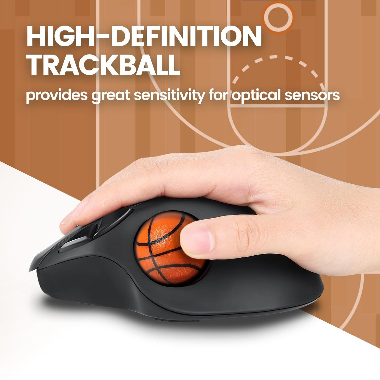 「このトラックボールは、34mmのサイズでしっかりとした握り心地を提供。独自のバスケットボールデザインが、視覚的にも楽しませてくれます!光沢仕上げにより、操作中の滑りやすさも軽減し、ストレスなく動かすことができます。」
