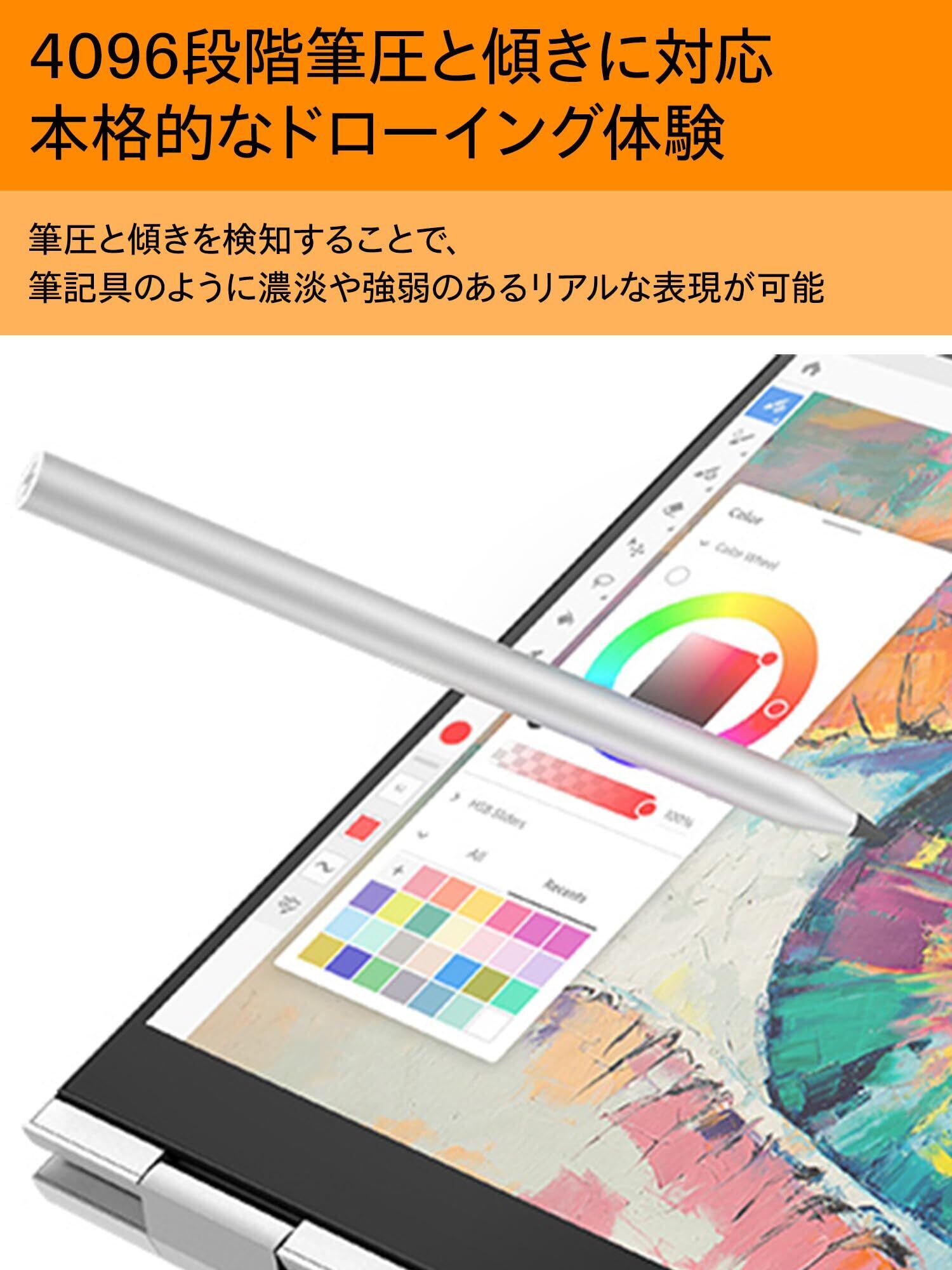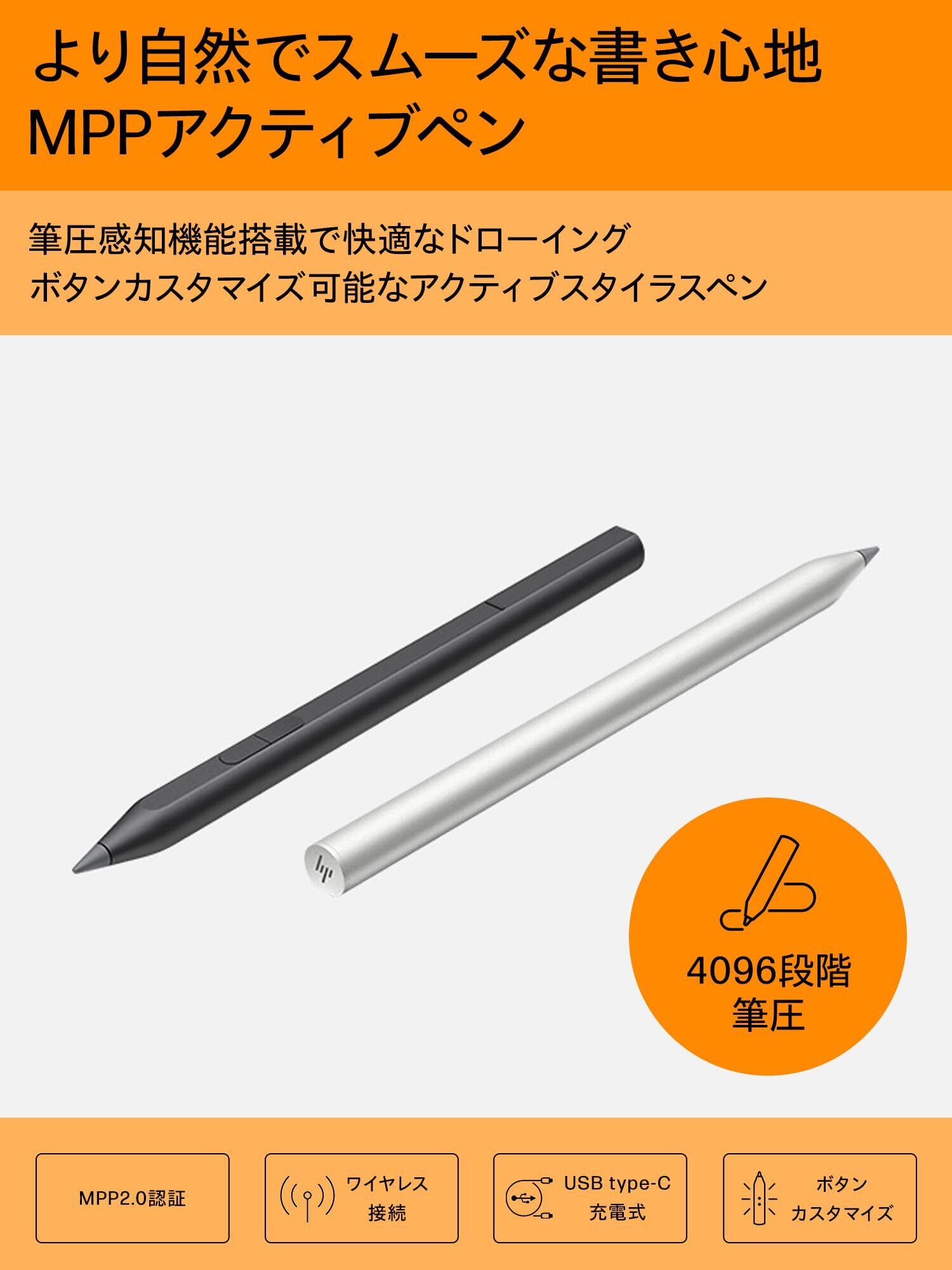 HP MPP アクティブペン Microsoft Pen プロトコル2.0 USB充電式 4096段階筆圧検知 傾き対応 (型番:3J123AA#UUF)シルバー【国内正規品】