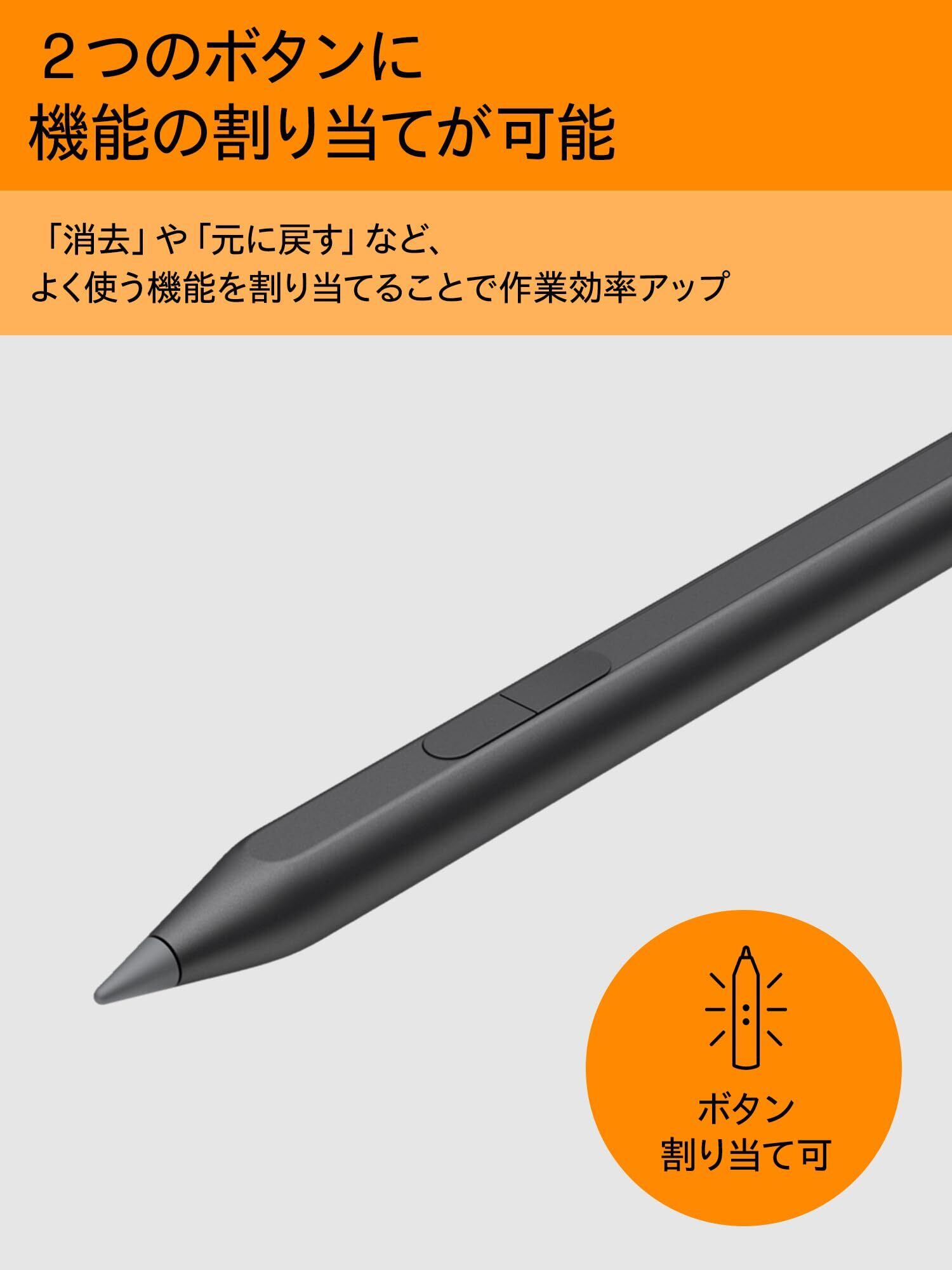 4096段階の筆圧検知と傾きに対応し、より自然でスムーズなライティングを可能にする、Microsoft Penプロトコル2.0に対応した充電式アクティブペン。