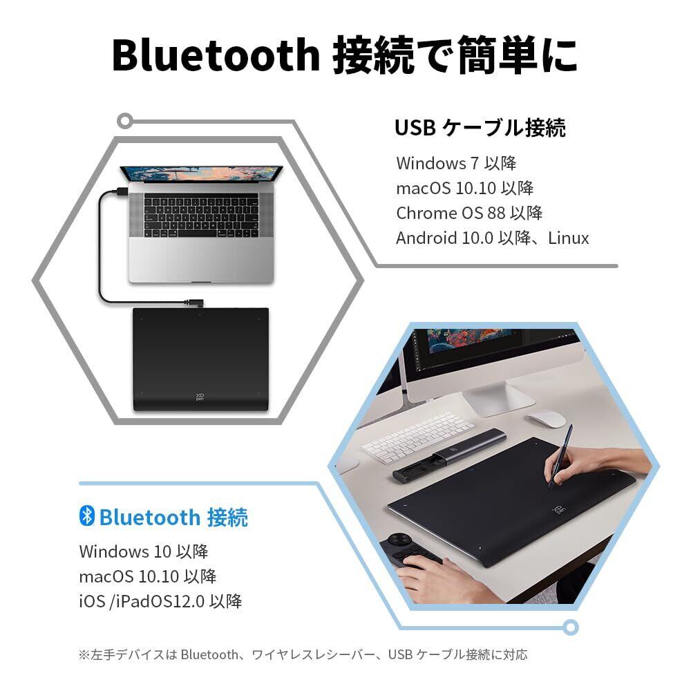 「Windows、macOS、Linux、およびAndroidに対応しており、利便性は抜群です。主要なソフトウェア、例えばPhotoshopやClip Studio Paintなどにも対応しており、あなたの使用環境に簡単にフィットします。」