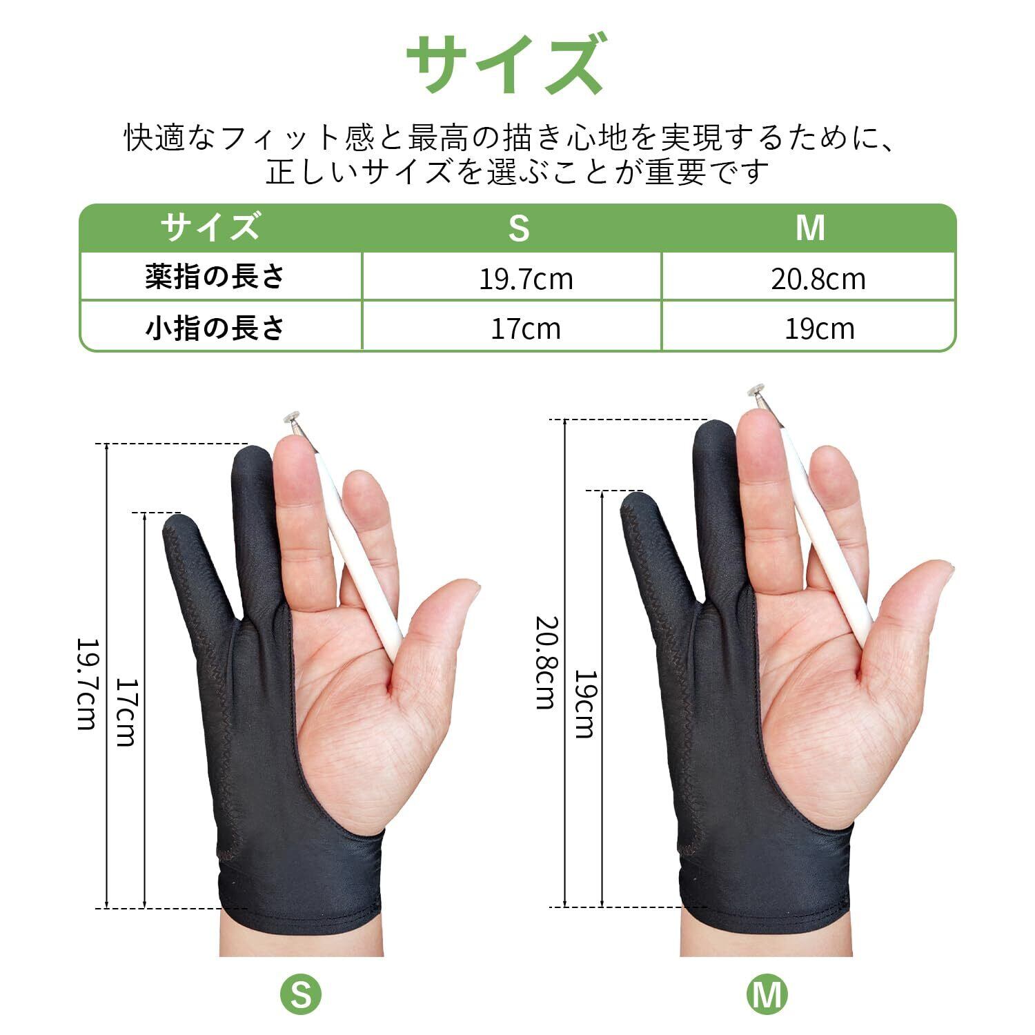 [WIFUME] 二本指 グローブ 製図用手袋 2枚入 イラスト 手袋 誤作動防止 防汚 手汗防止 グローブ 通気性 ペンタブ 液タブ タブレット 板タブ iPad 左利き 右利き 男女兼用 お絵描き用 超快適 (Mサイズ)